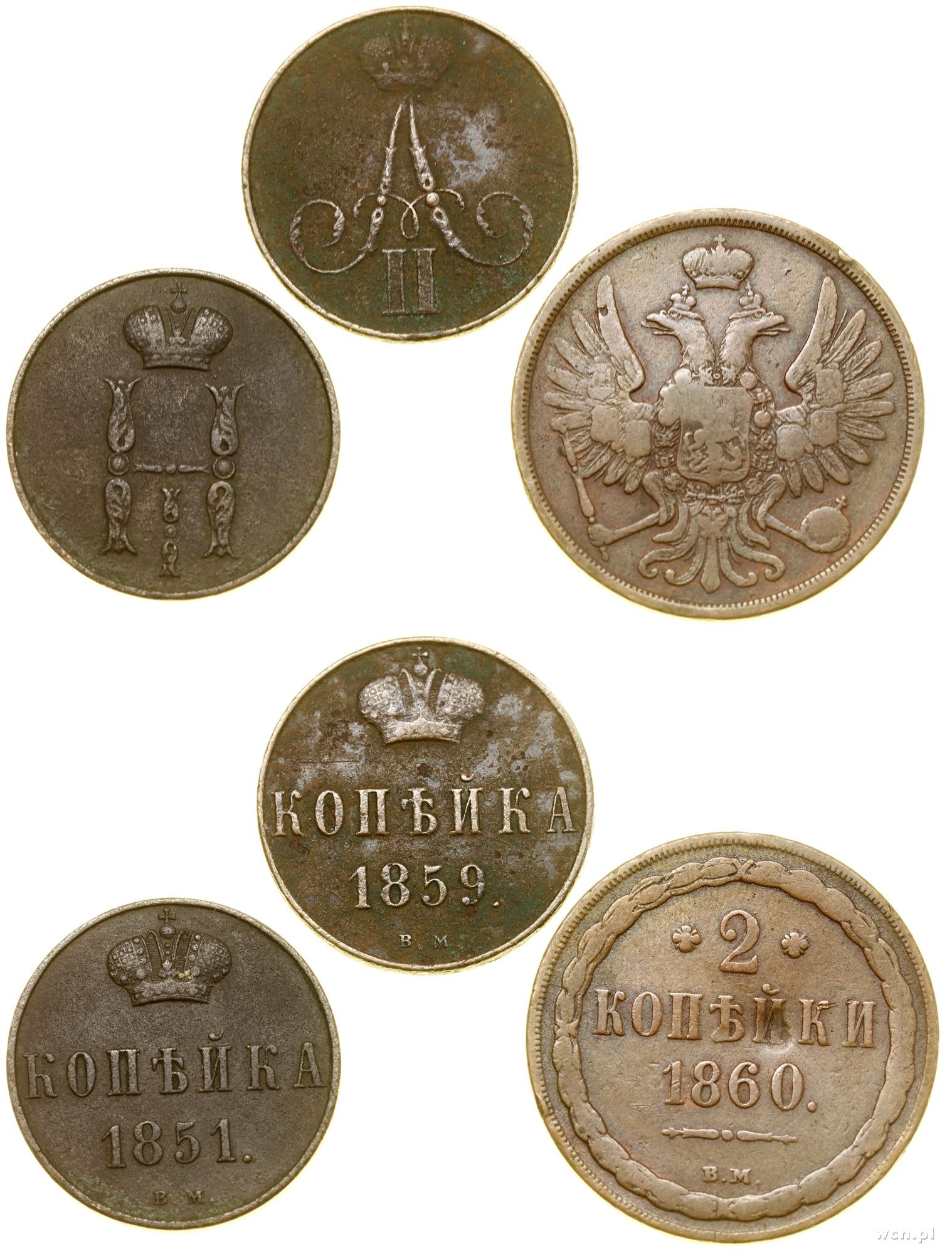 1 kopiejka 1851 BM - Mikołaj I (1825–1855), 1 kopiejka 1859 BM, 2 kopiejki 1860 BM