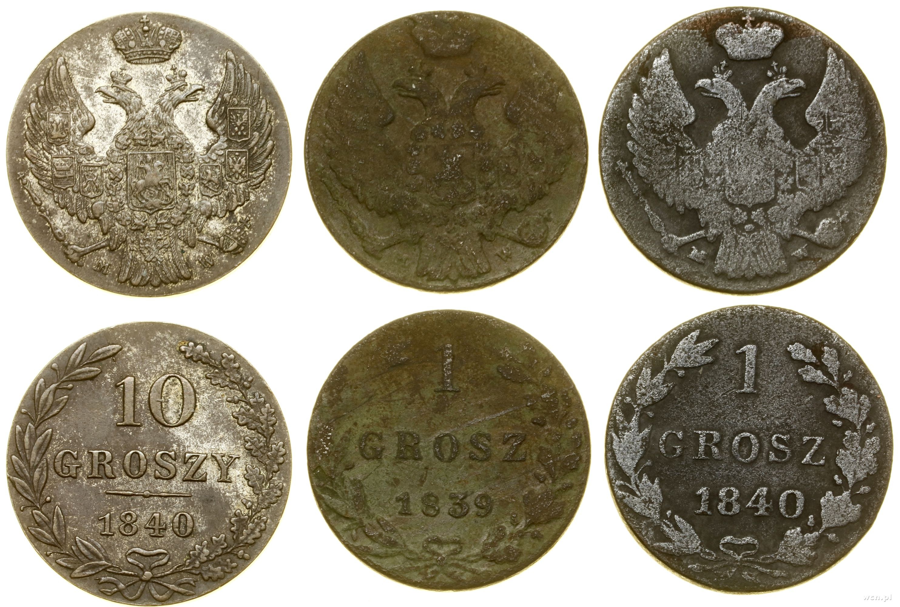 10 groszy 1840 MW (II-), 1 grosz 1839 (III-), 1 grosz 1840 (IV)