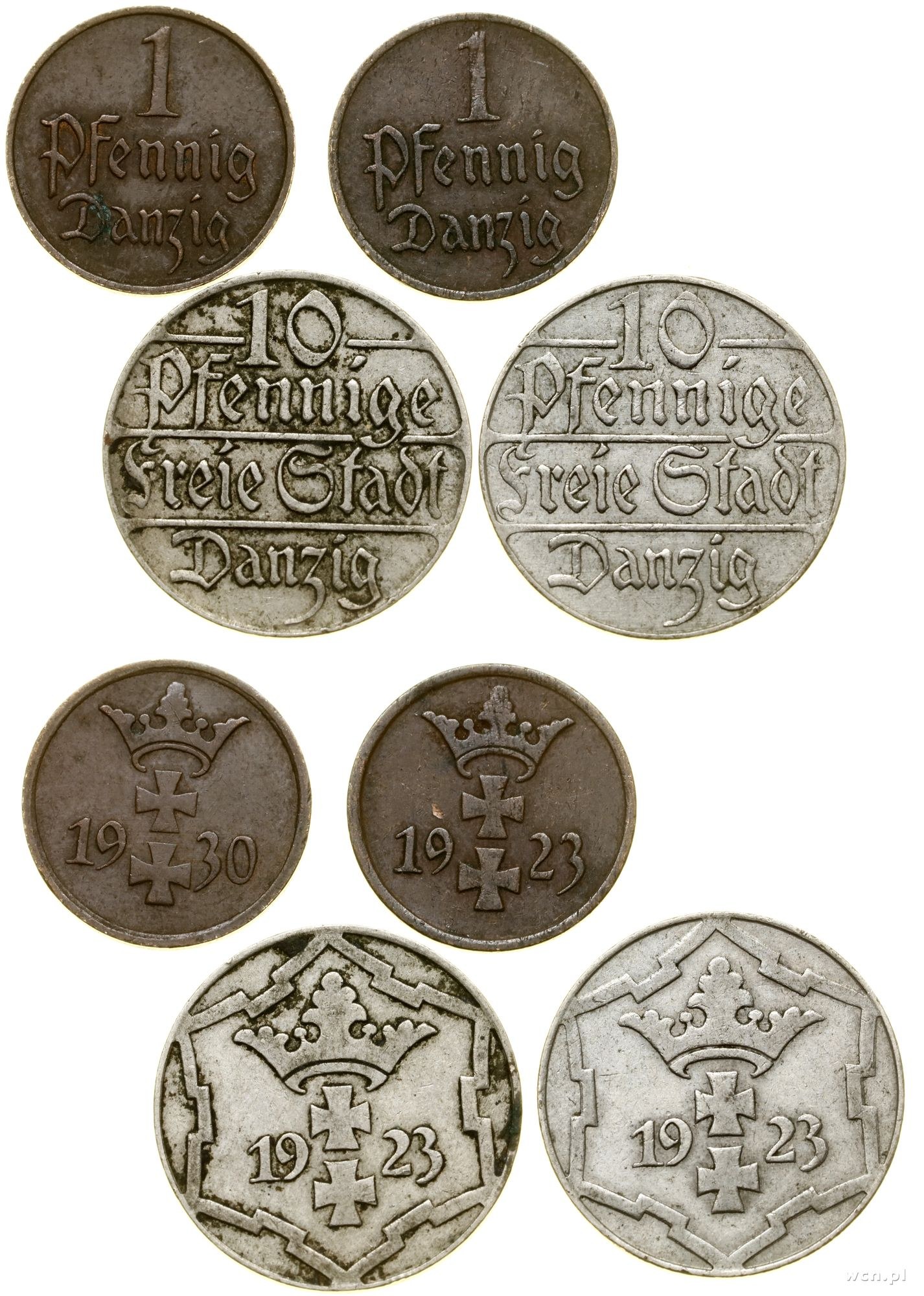 w skład zestawu wchodzi 1 fenig 1923, 1930, 10 fenigów 2 x 1923