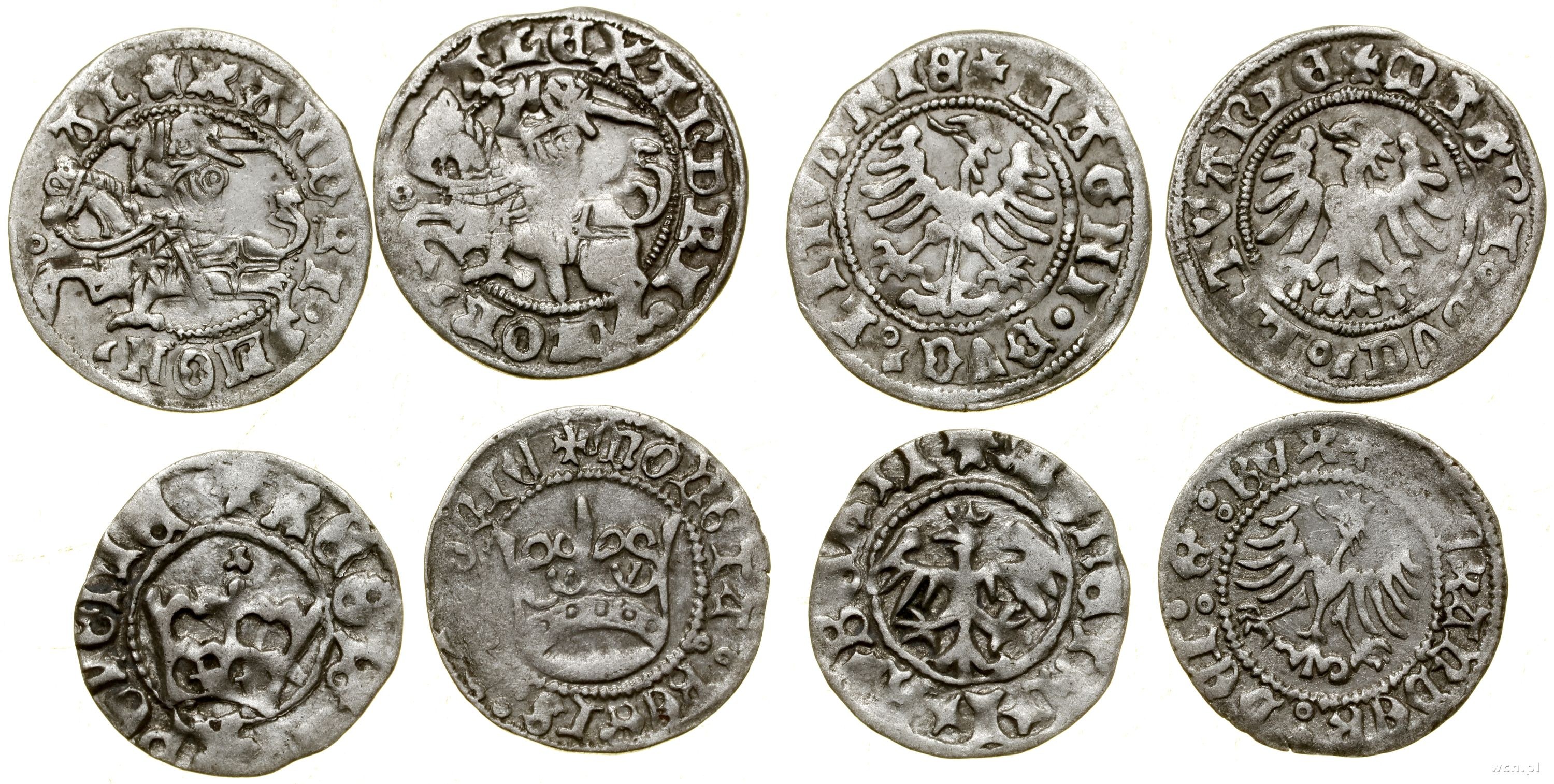 1) półgrosz bez daty Kraków (Jan Olbracht) 2) półgrosz bez daty Kraków (Aleksander Jagiellończyk 3) 2 x półgrosz bez daty Wilno (Aleksander Jagiellończyk