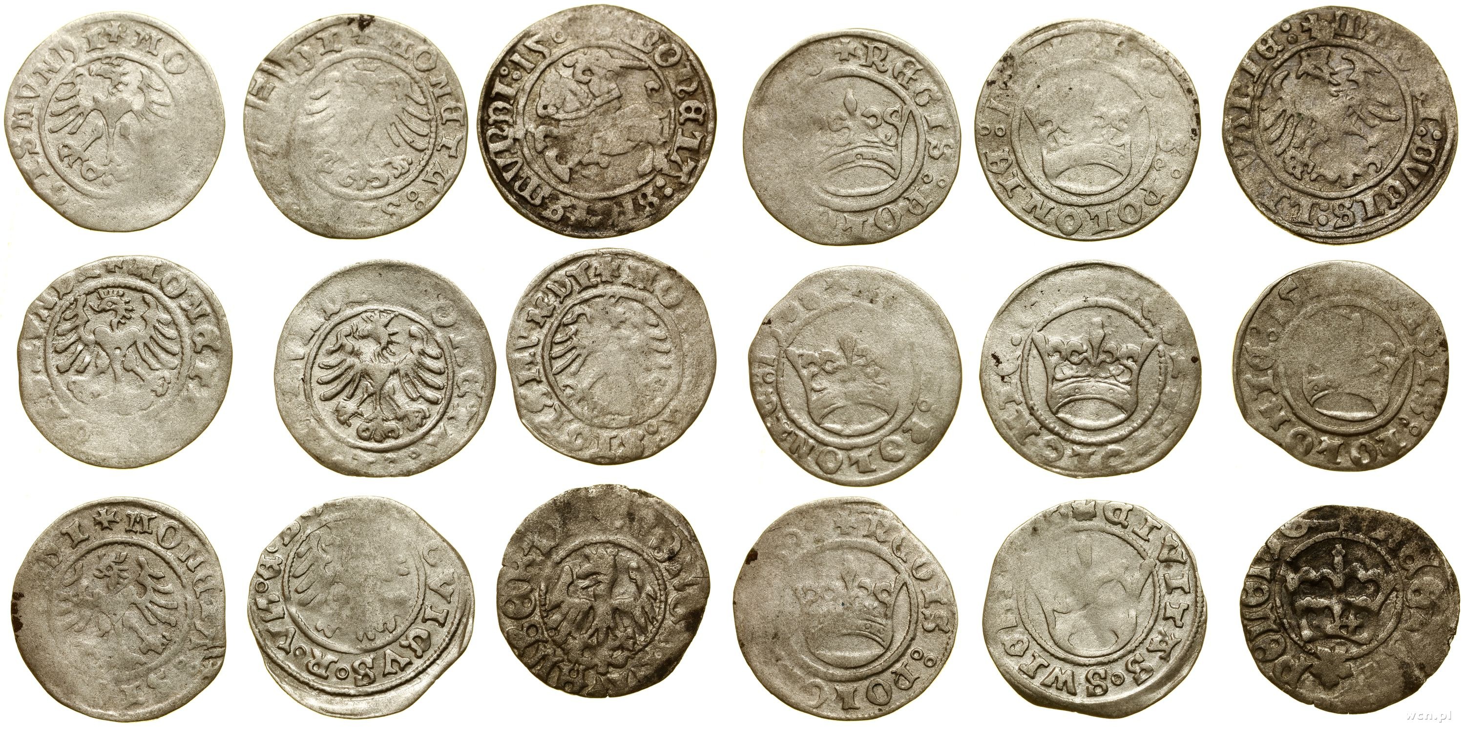 Zygmunt I Stary (7 x koronny, 1 x litewski) oraz półgrosz koronny Jana Olbrachta