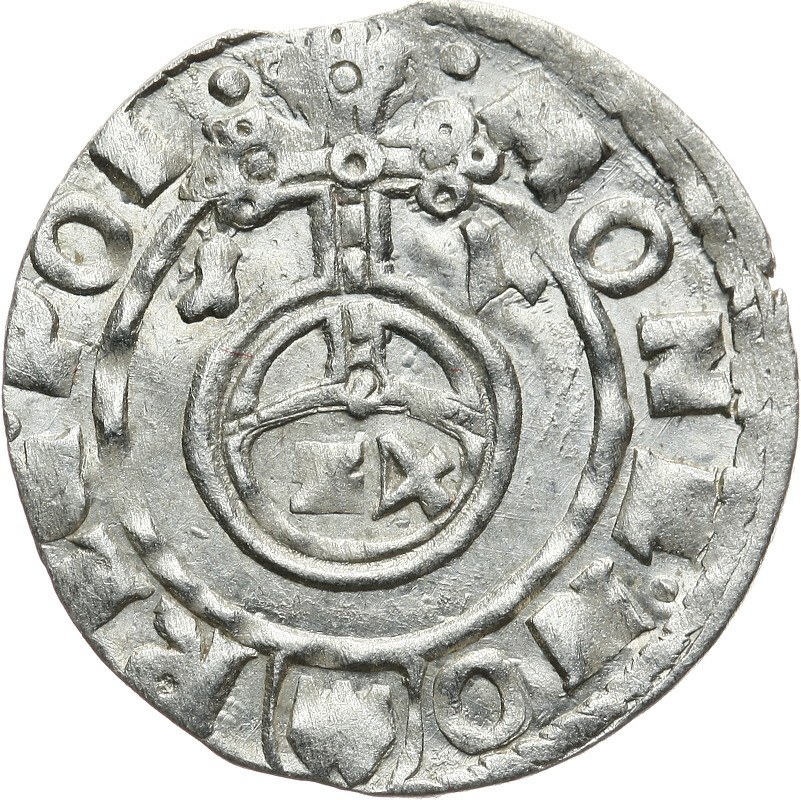 Odmiana z datą pod ramionami krzyża, na rewersie z końcówką POL, na awersie SIGIS 3, kropki po bokach krzyża, blask menniczy na monecie, piękna.Literatura: Kopicki 832