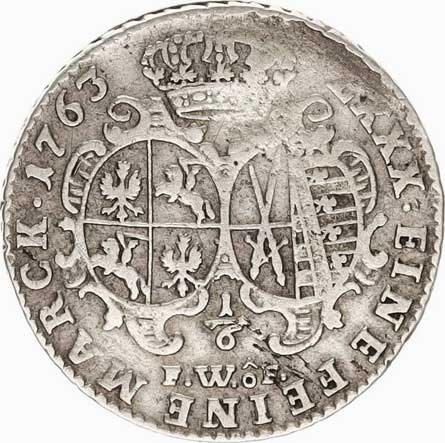 Polsko, Friedrich August III. (1733-1763), 1/6 tolaru 1763 FWoF, Drážďny Kamiński 325; Kahnt 565