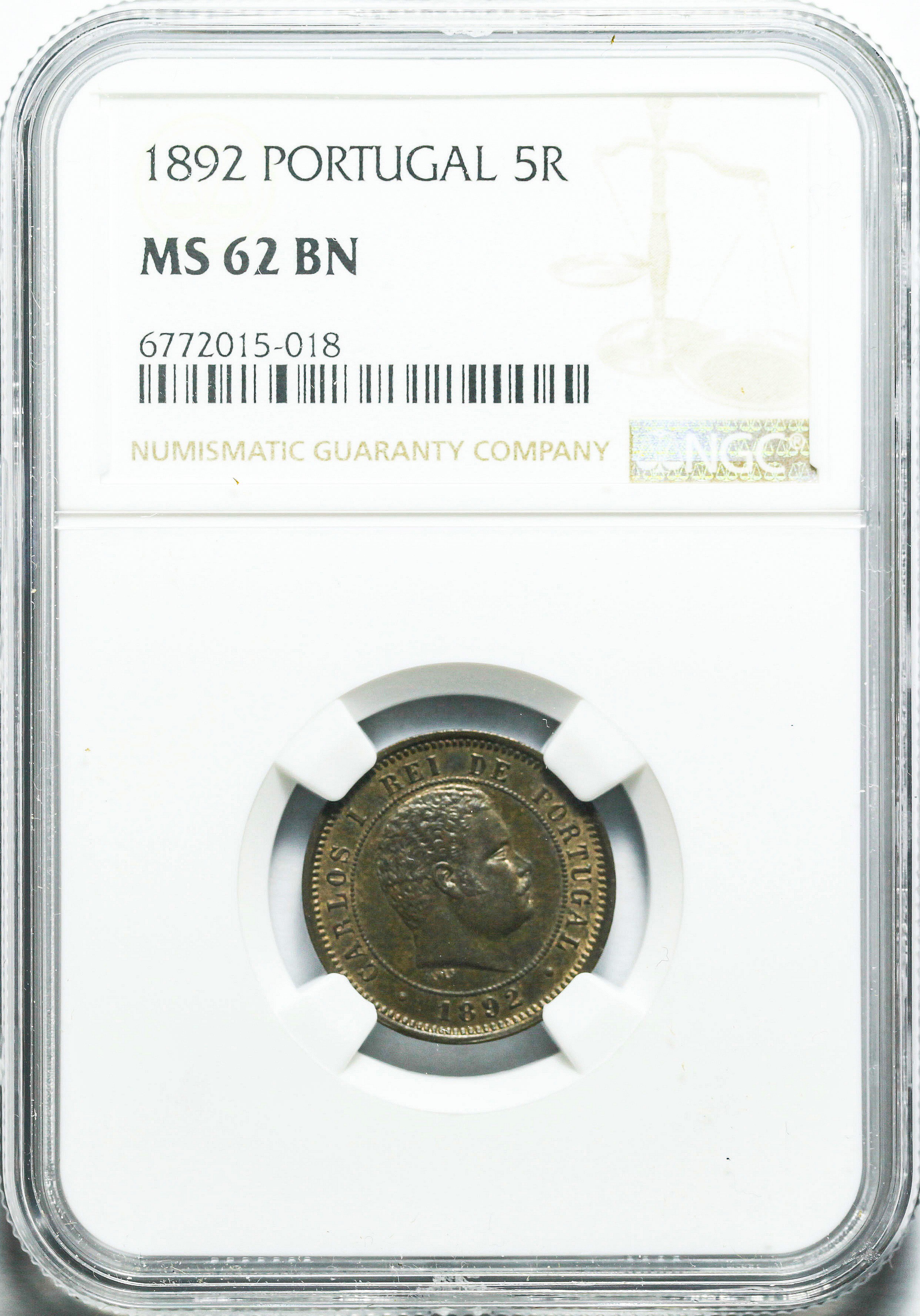 Portugalia, Carlos I, 5 reis 1892, bardzo ładne