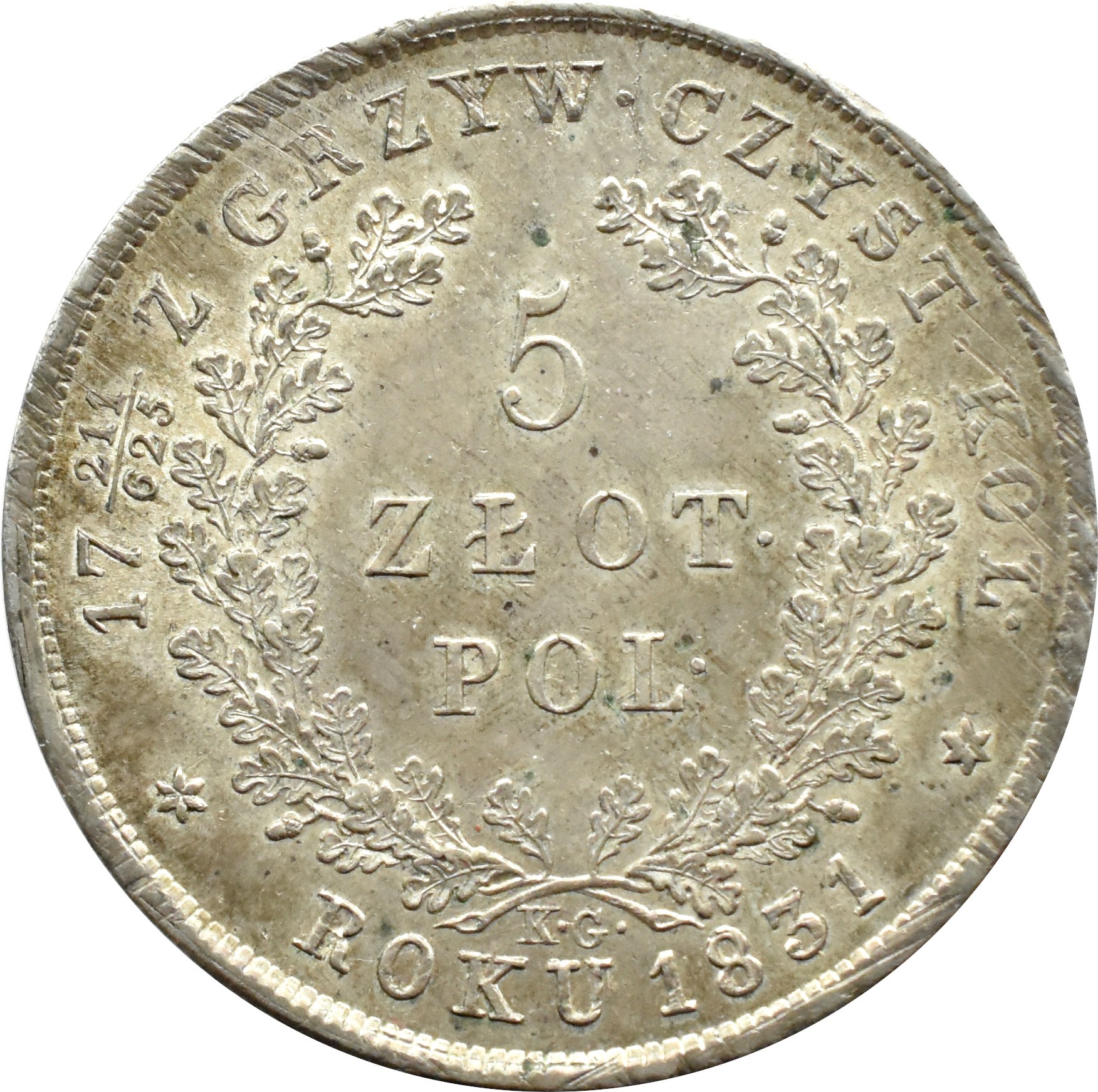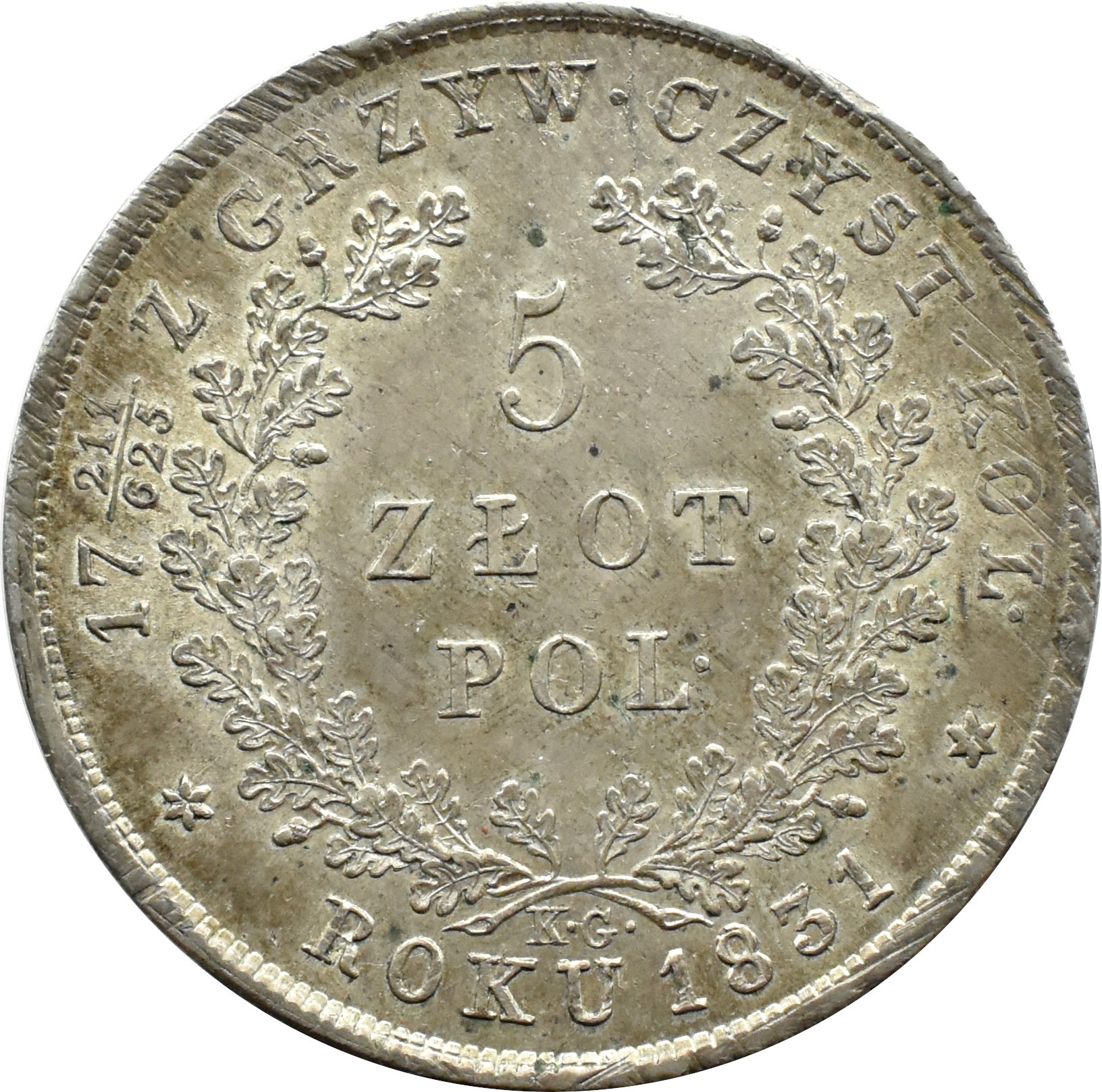 Powstanie Listopadowe, 5 złotych 1831 K.G., mennica Warszawa