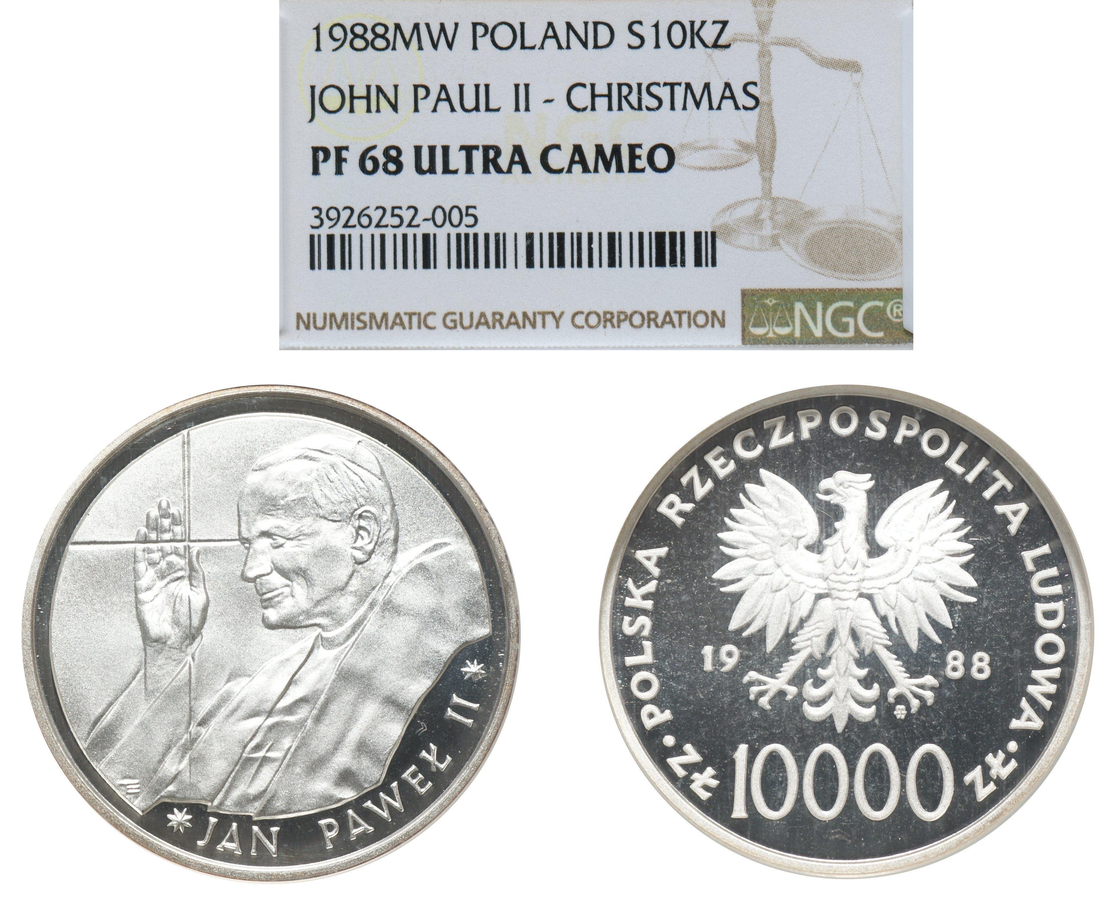 PRL, 10.000 złotych 1988 Jan Paweł II - NGC PF68 ULTRA CAMEO