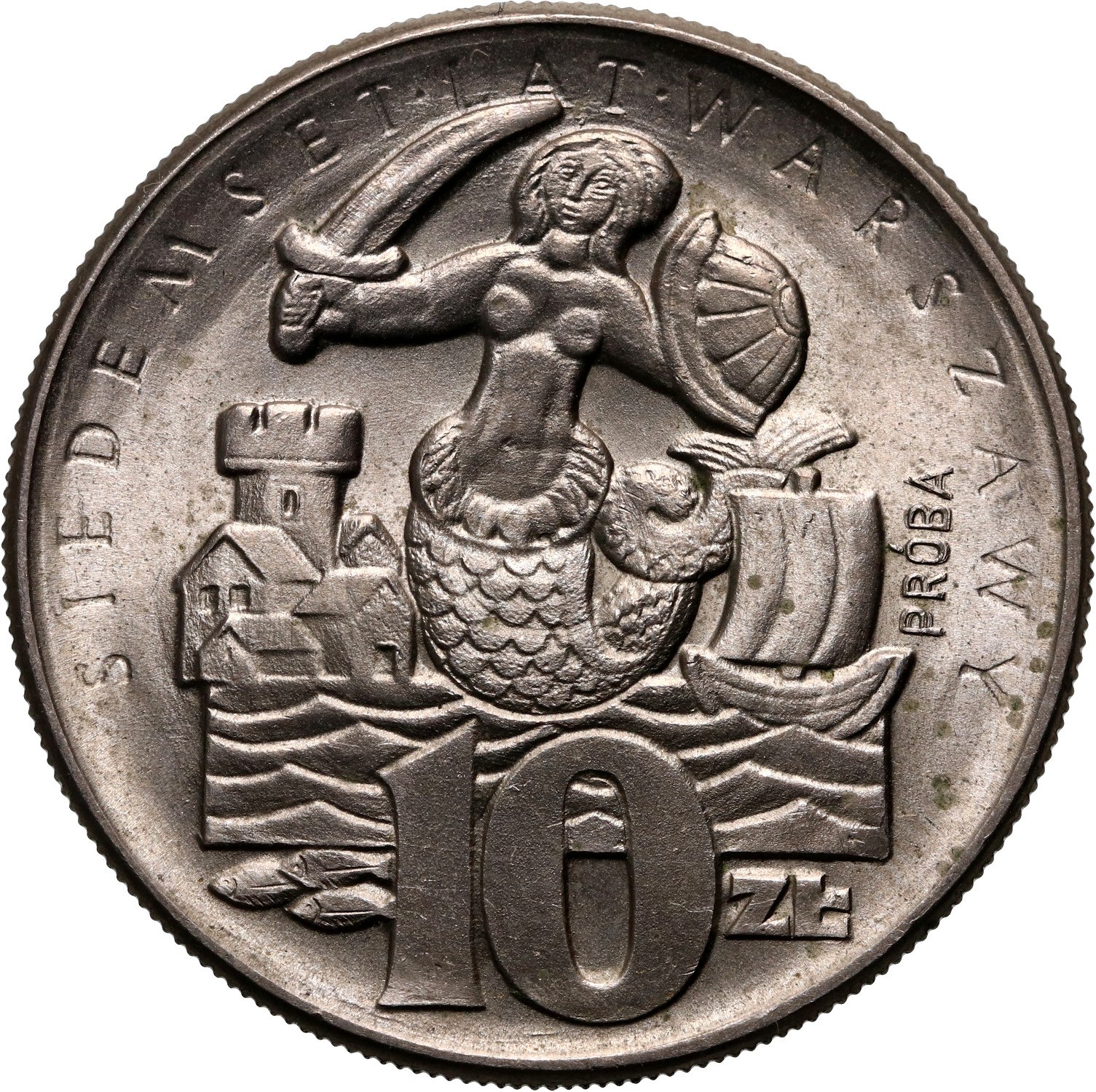 PRL, 10 złotych 1965, VII wieków Warszawy "gruba" Syrenka, PRÓBA, miedzionikiel