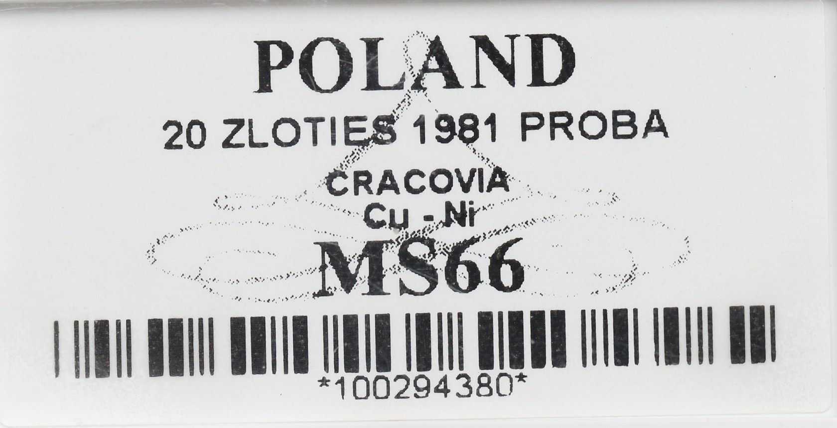 PRL, 20 złotych 1981 Kraków - Próba CuNi GCN MS66