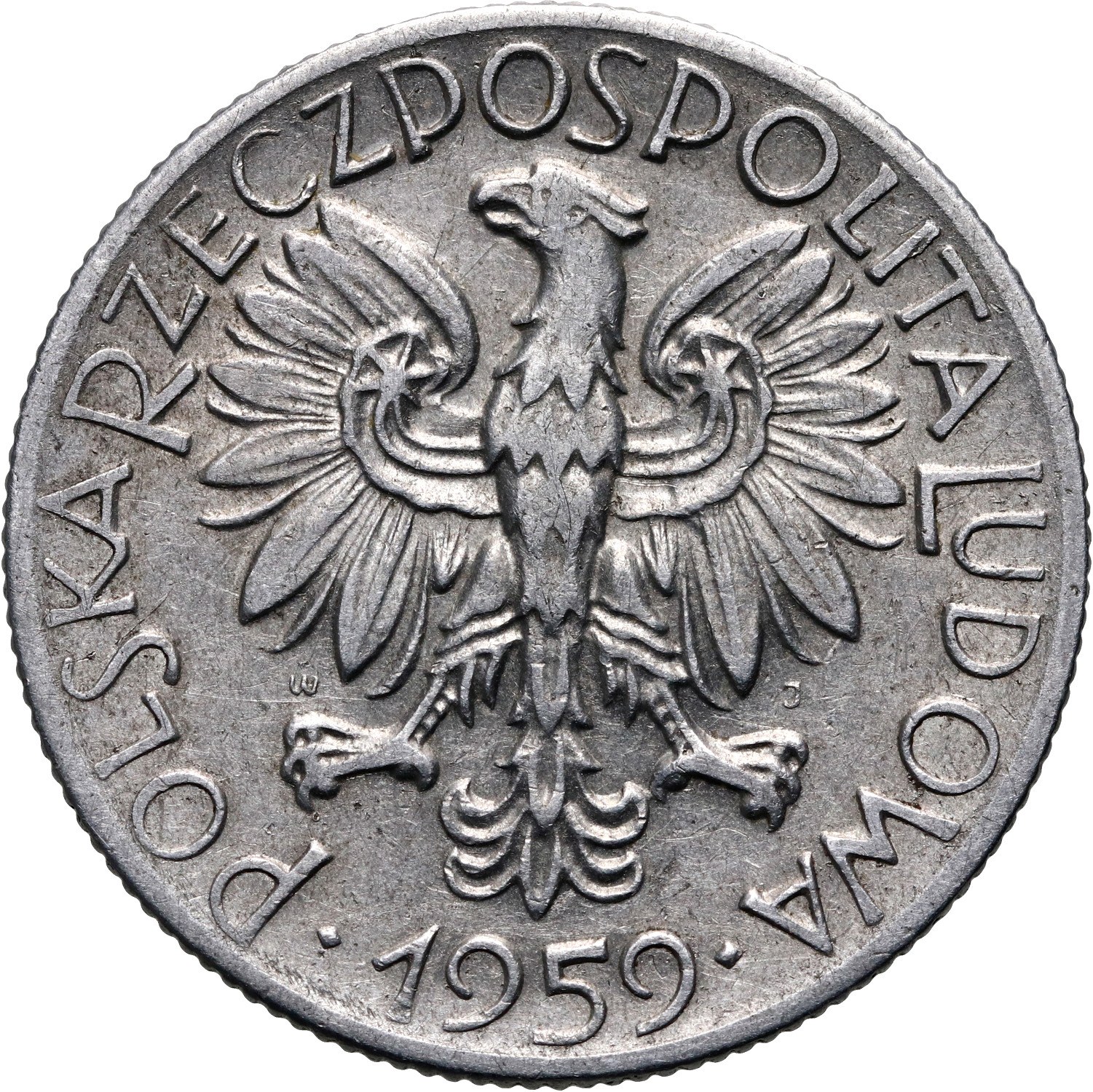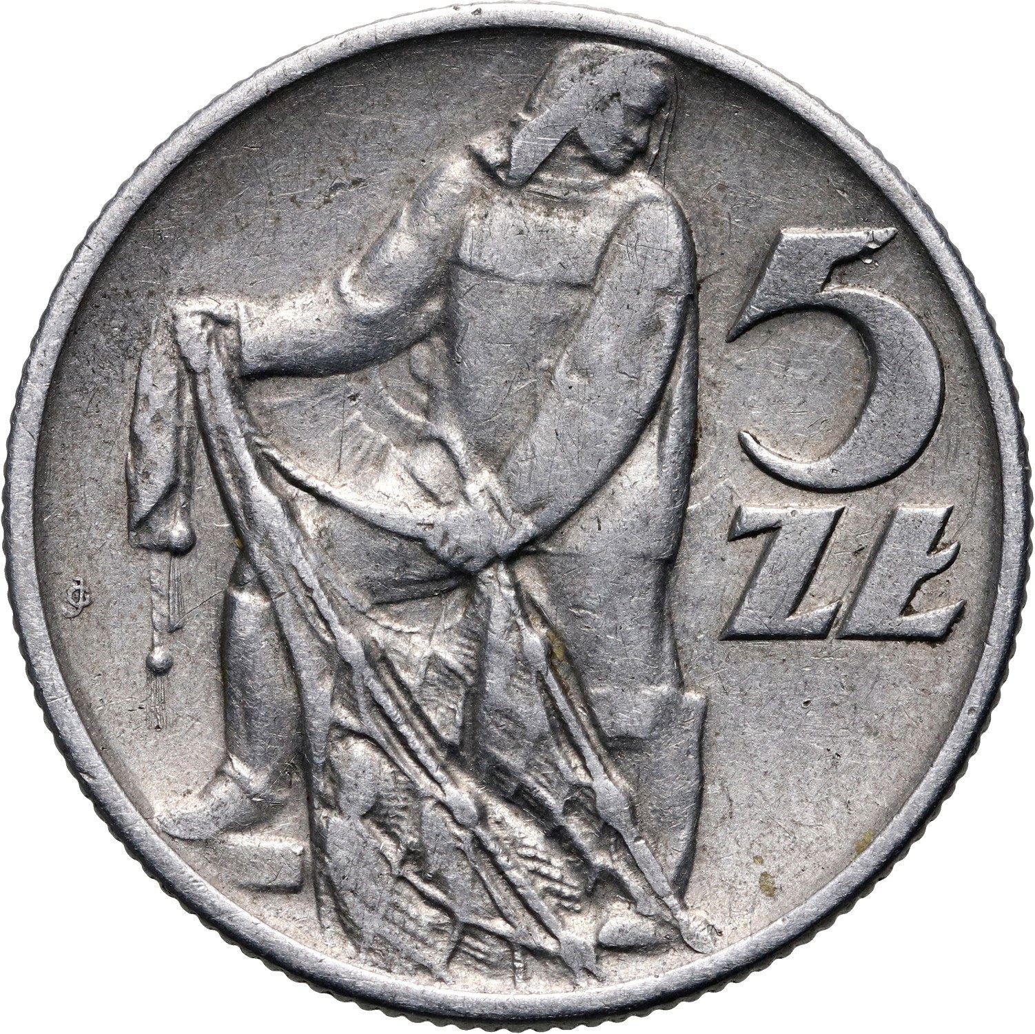 PRL, 5 złotych 1959, Rybak, MOCNE SŁONECZKO Z PROMIENIAMI!
