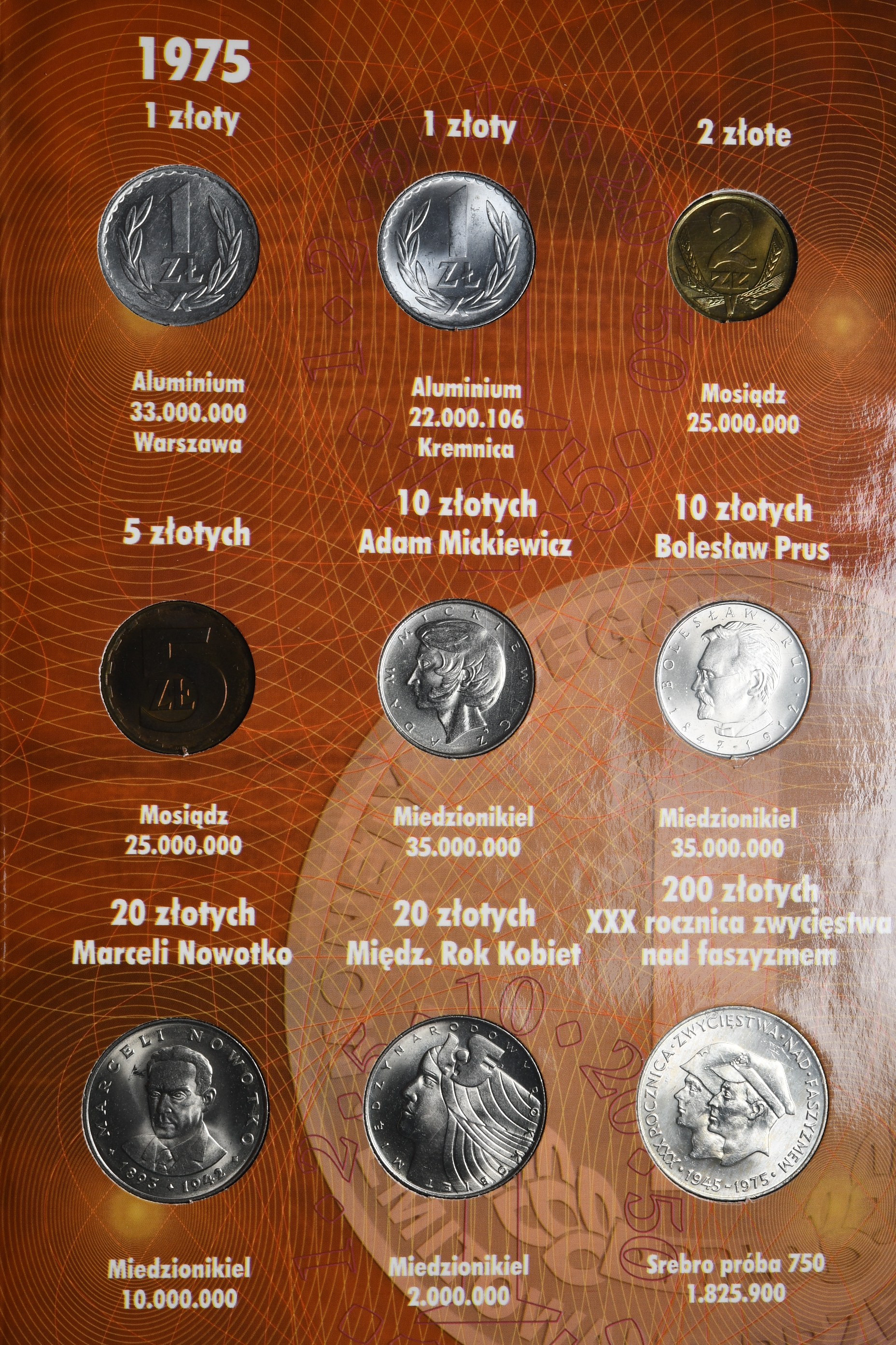 Kompletny rocznik menniczych monet z rocznika 1975. Monety wyjęte z albumu, album będzie licytowany jako oddzielna pozycja.