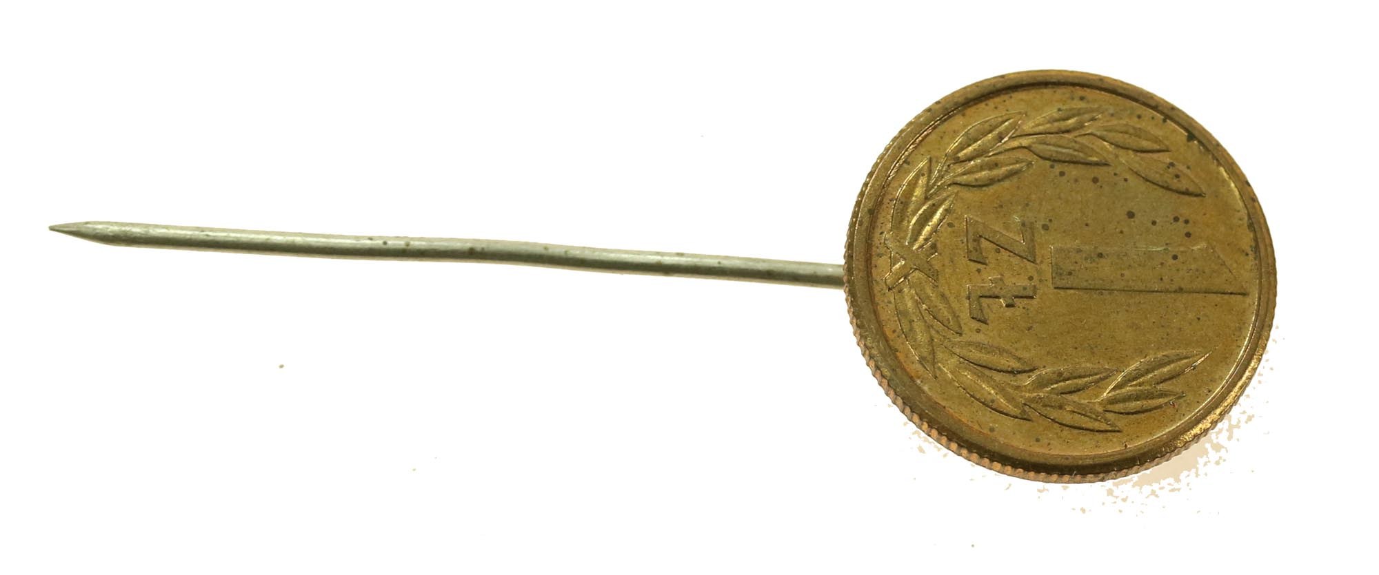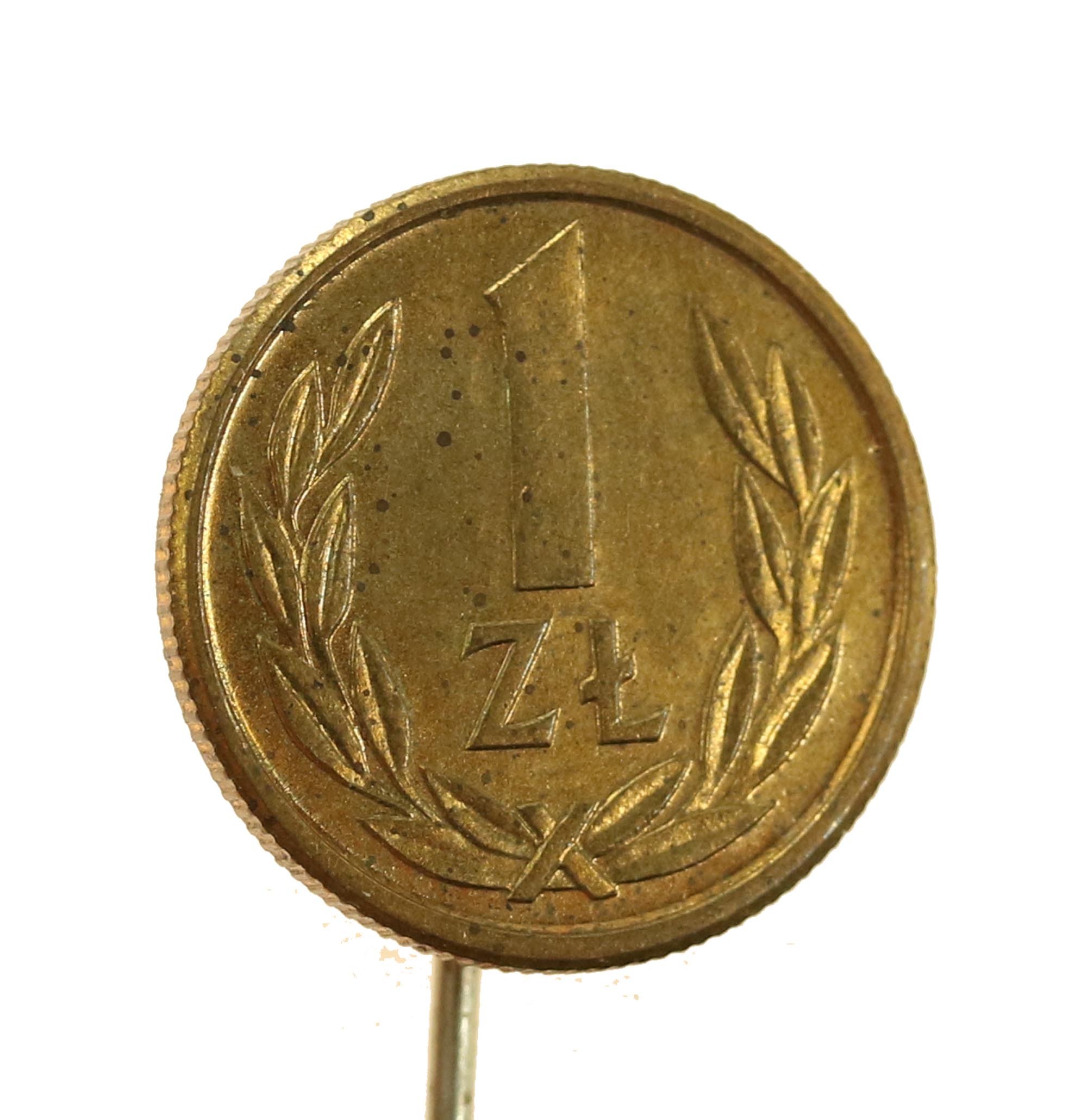 PRL, moneta - wpinka wybita stemplem 1 złoty 1989 na krążku z brązu - rzadkie.
