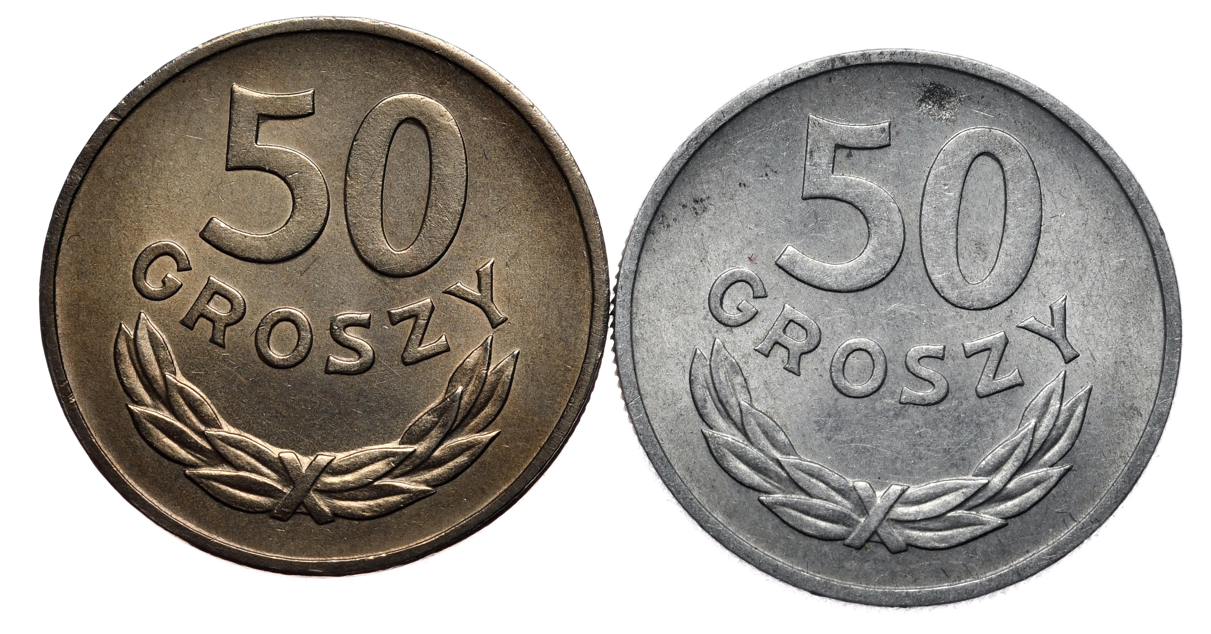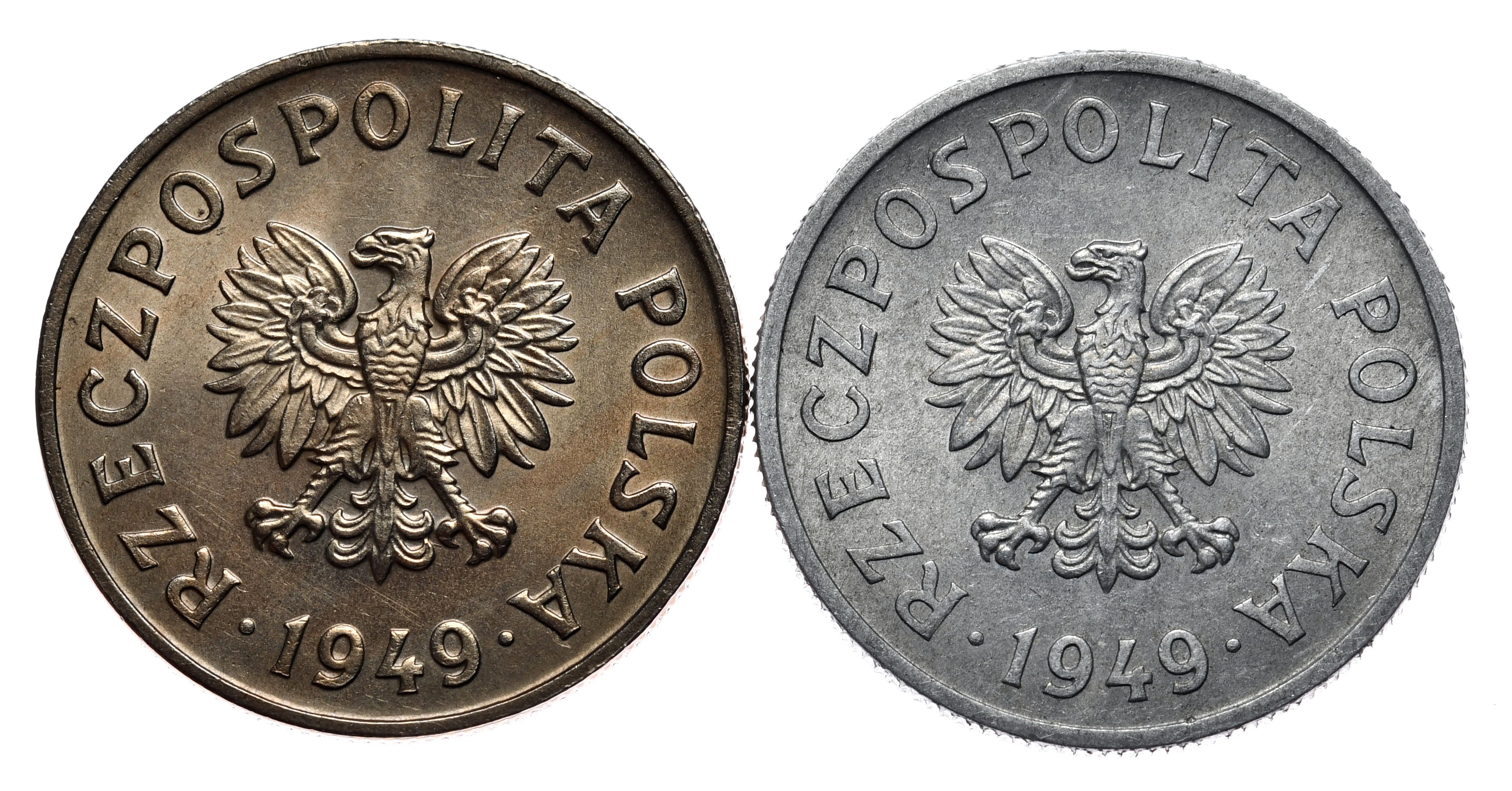 PRL, zestaw 50 groszy 1949, aluminium i miedzionikiel