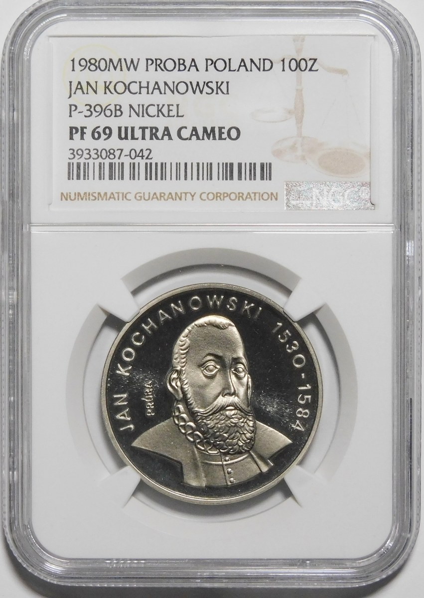 PRÓBA NIKIEL 100 złotych 1980 Jan Kochanowski - popiersie bez ramion