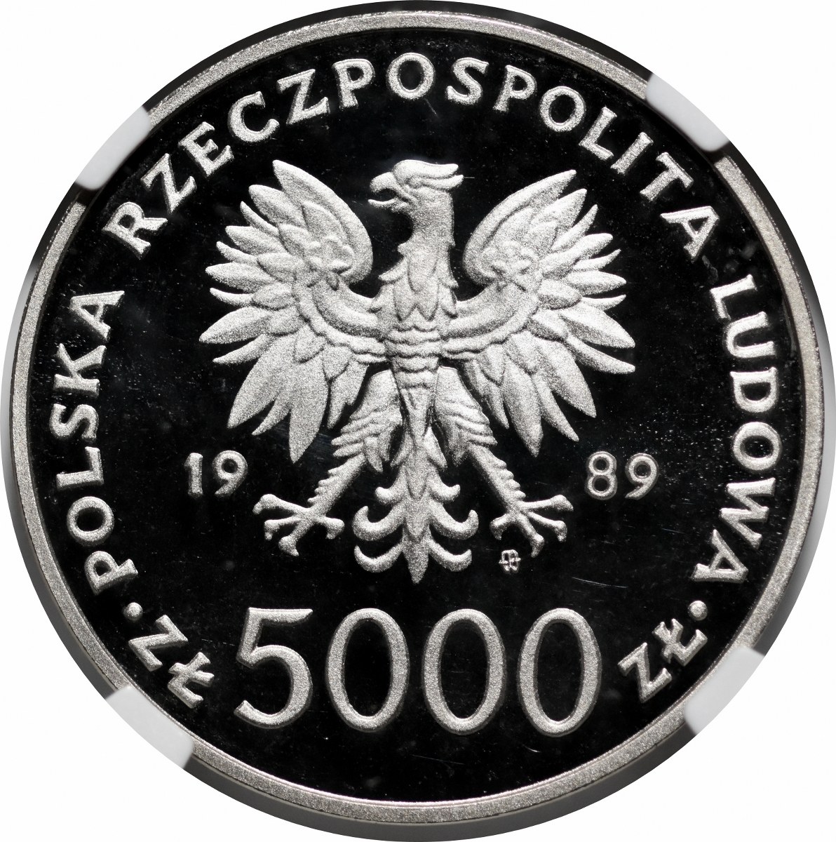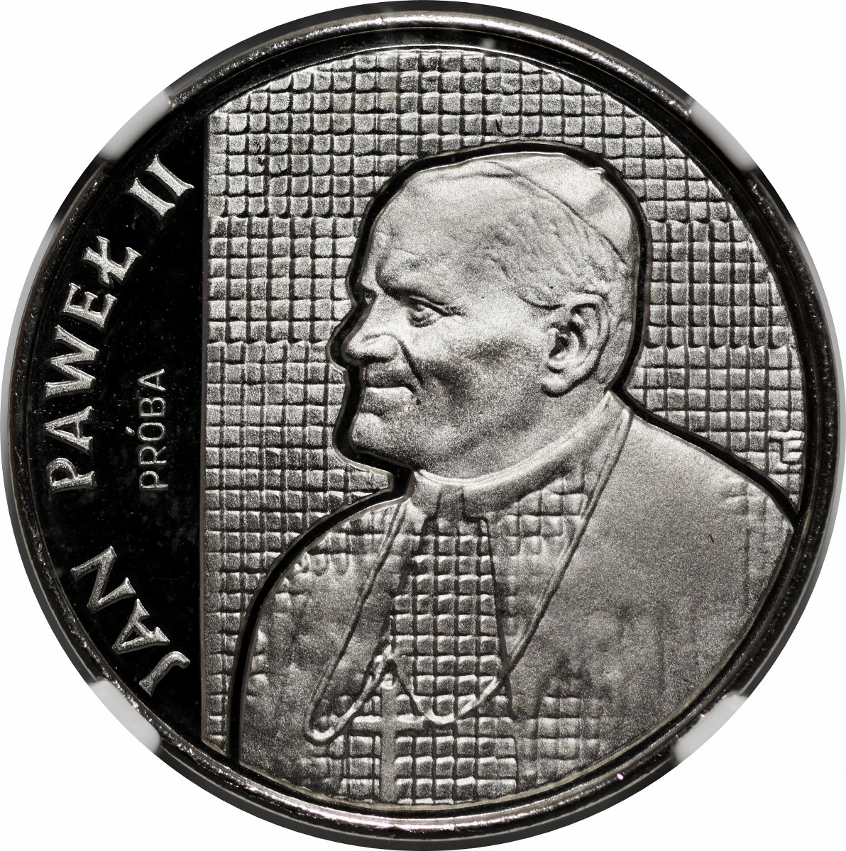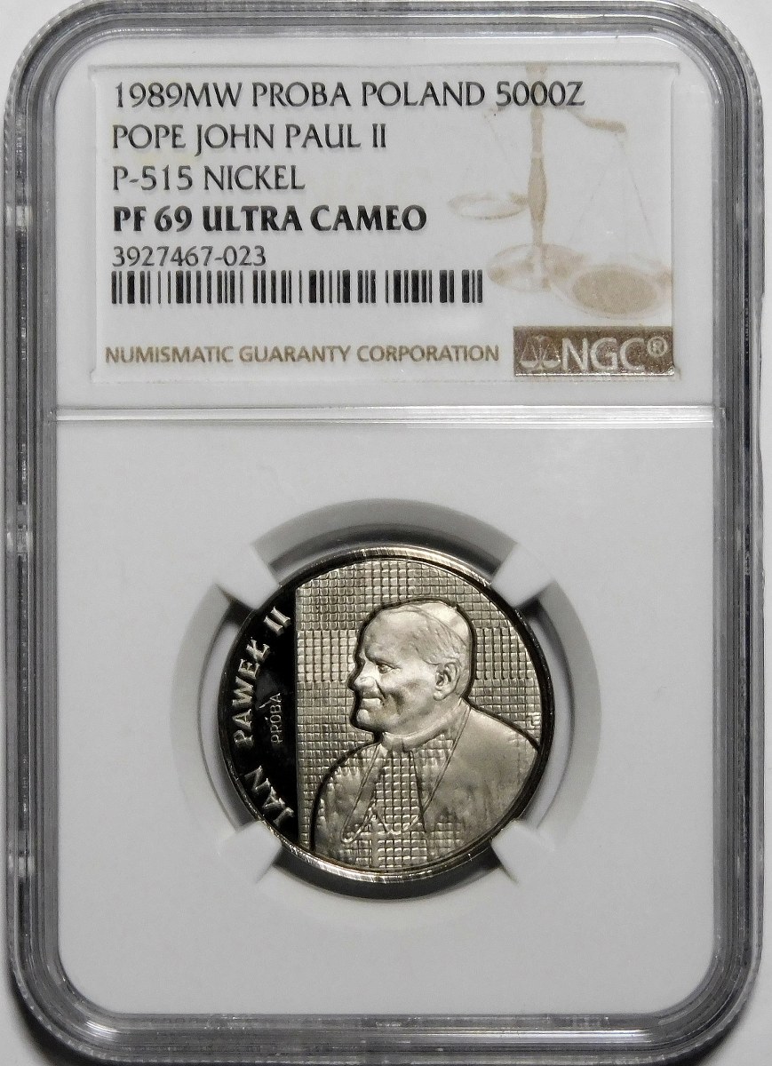 PRÓBA NIKIEL 5000 złotych 1989 Jan Paweł II - popiersie na tle kratki