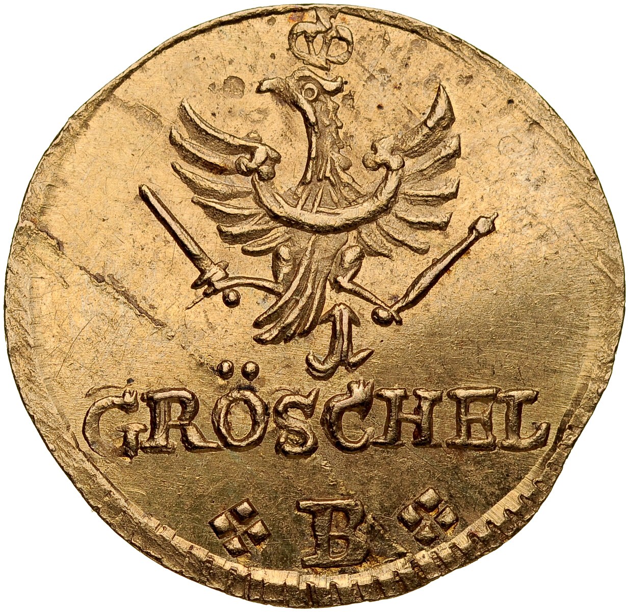 Kluge 329.6; Old. 311, złoto, waga 1,01g., odbitka w złocie dla kolekcjonerów, menniczy stan zachowania, lustro mennicze na całej powierzchni, nieznaczny defekt krążka na rv., bardzo rzadkie.