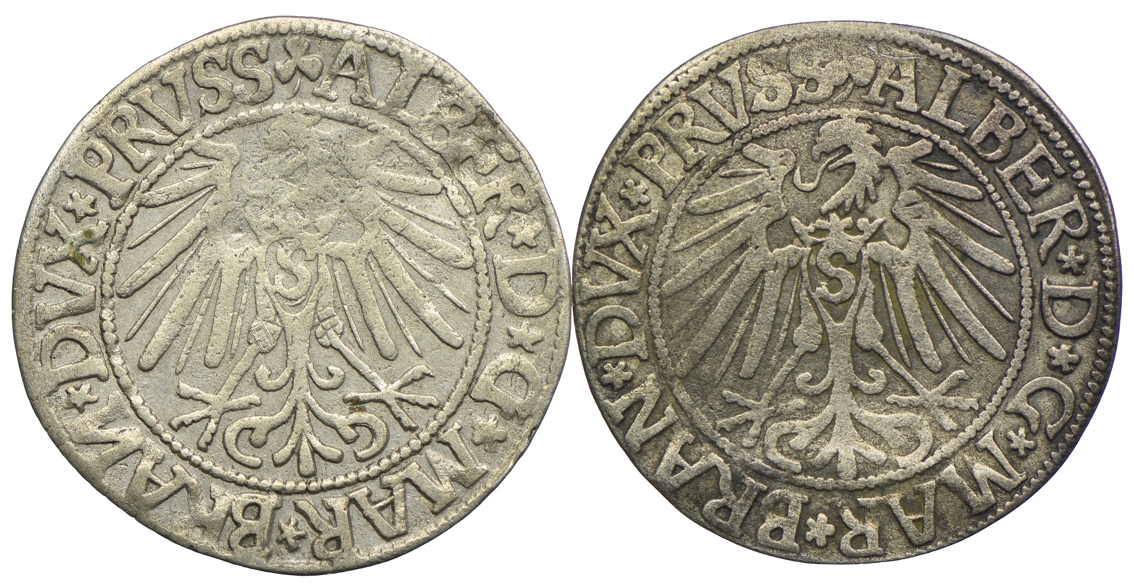 Prusy Książęce, 1 grosz 1543 PRVSS, 1544 PRVSS (2szt.)