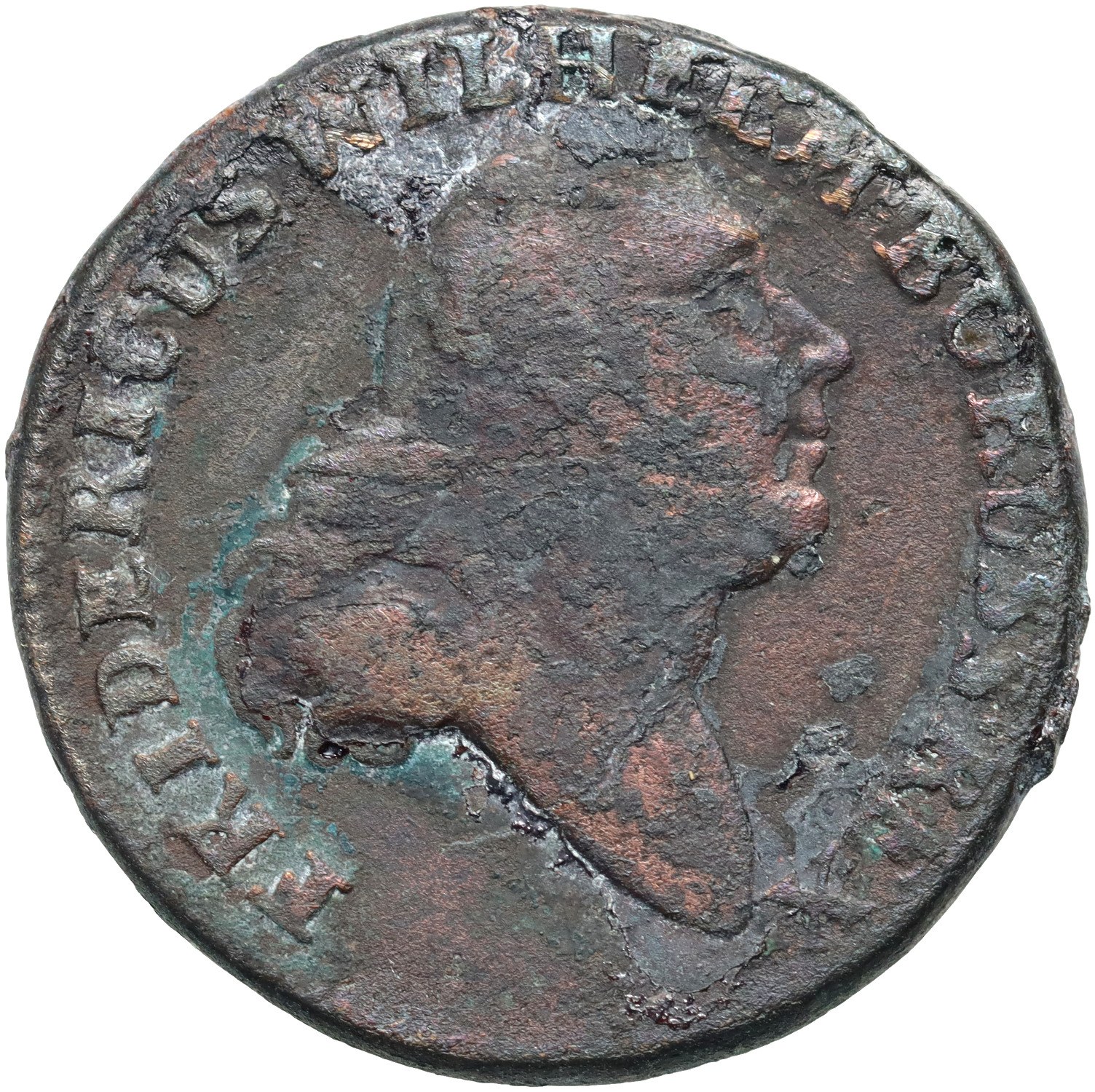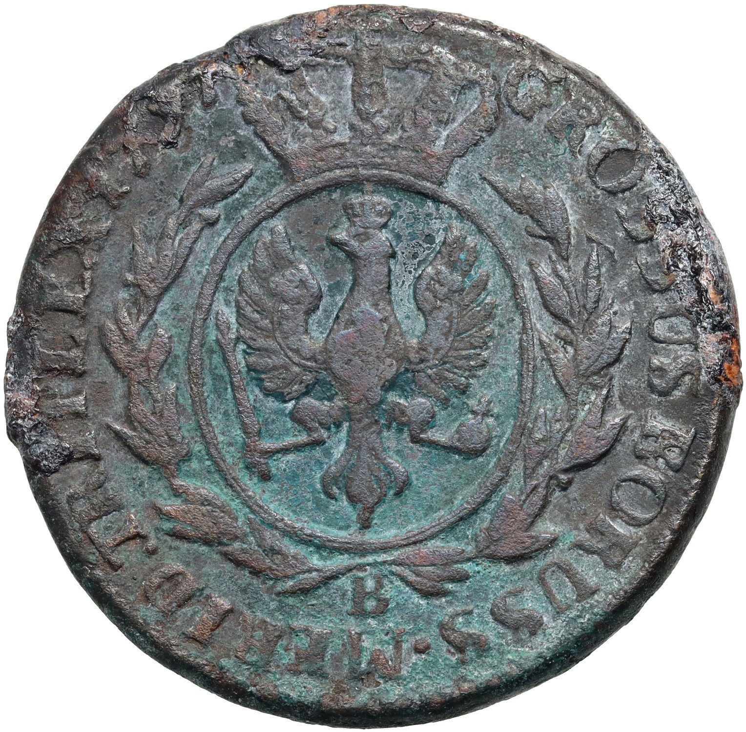 Prusy Południowe, Fryderyk Wilhelm II, trojak 1797 B, Wrocław - odmienny wieniec na rewersie