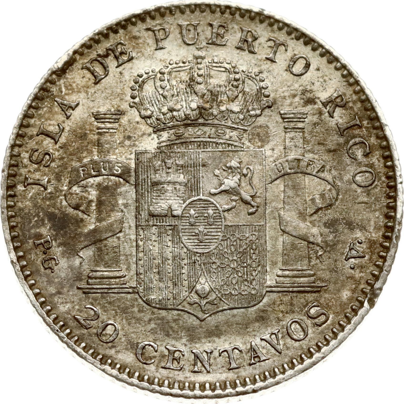 Puerto Rico. Alfonso XIII (1886-1898). 20 Centavos 1895 PGV. Silver 4.92 g. KM 22.