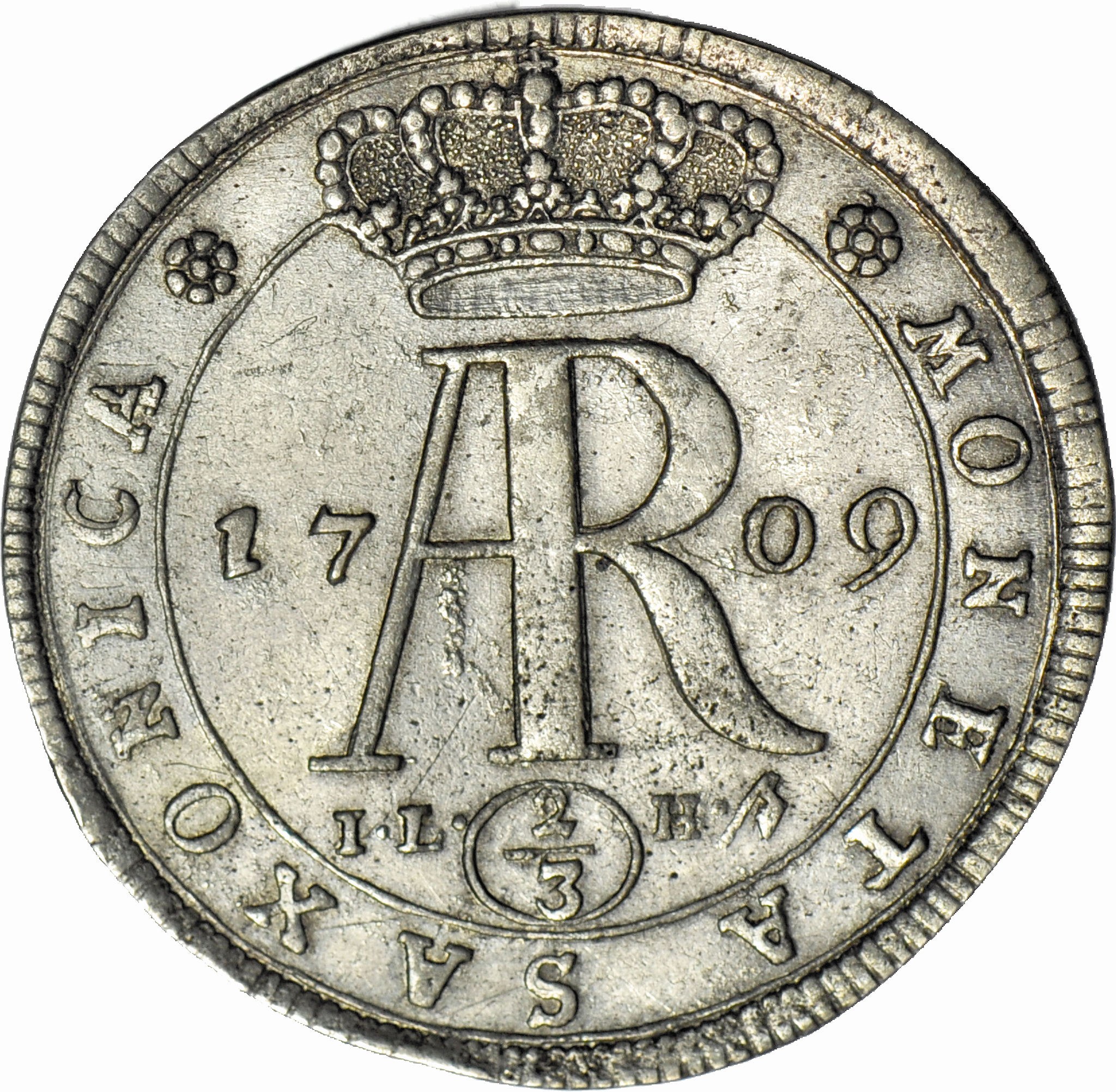 Rzadkie, poszukiwane, cenione, monogramowe 2/3 talara - gulden pierwszego Wettyna na polskim tronie. Ładny egzemplarz, dobre detale, równe bicie, połysk menniczy, delikatna patyna. Jedna z niewielu okazji poszerzania zbioru o tą rzadką i piękna monetę!