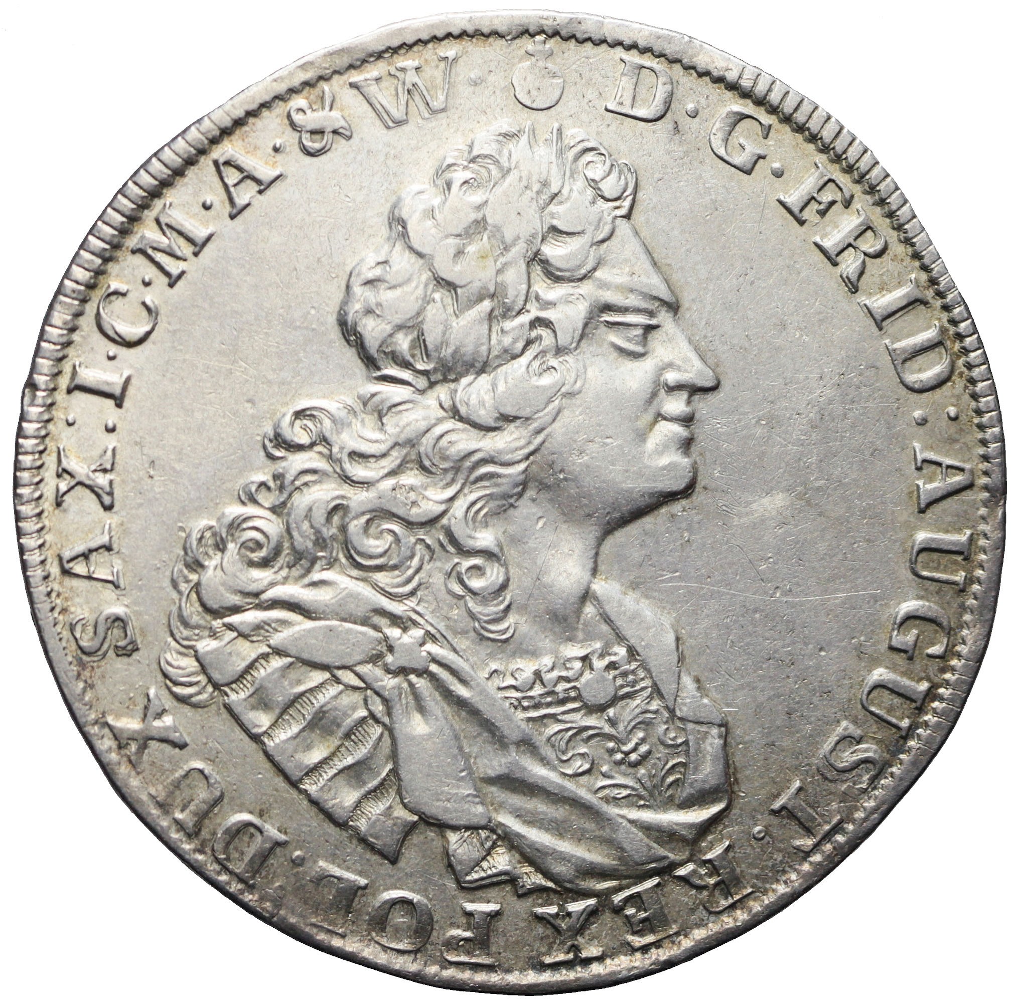 Talar z mennicy drezdeńskiej z inicjałami IGS. Bardzo rzadka odmiana z przebitą na stemplu ostatnią cyfrą daty z 5 na 6. Procedura niespotykana na dużych monetach srebrnych.