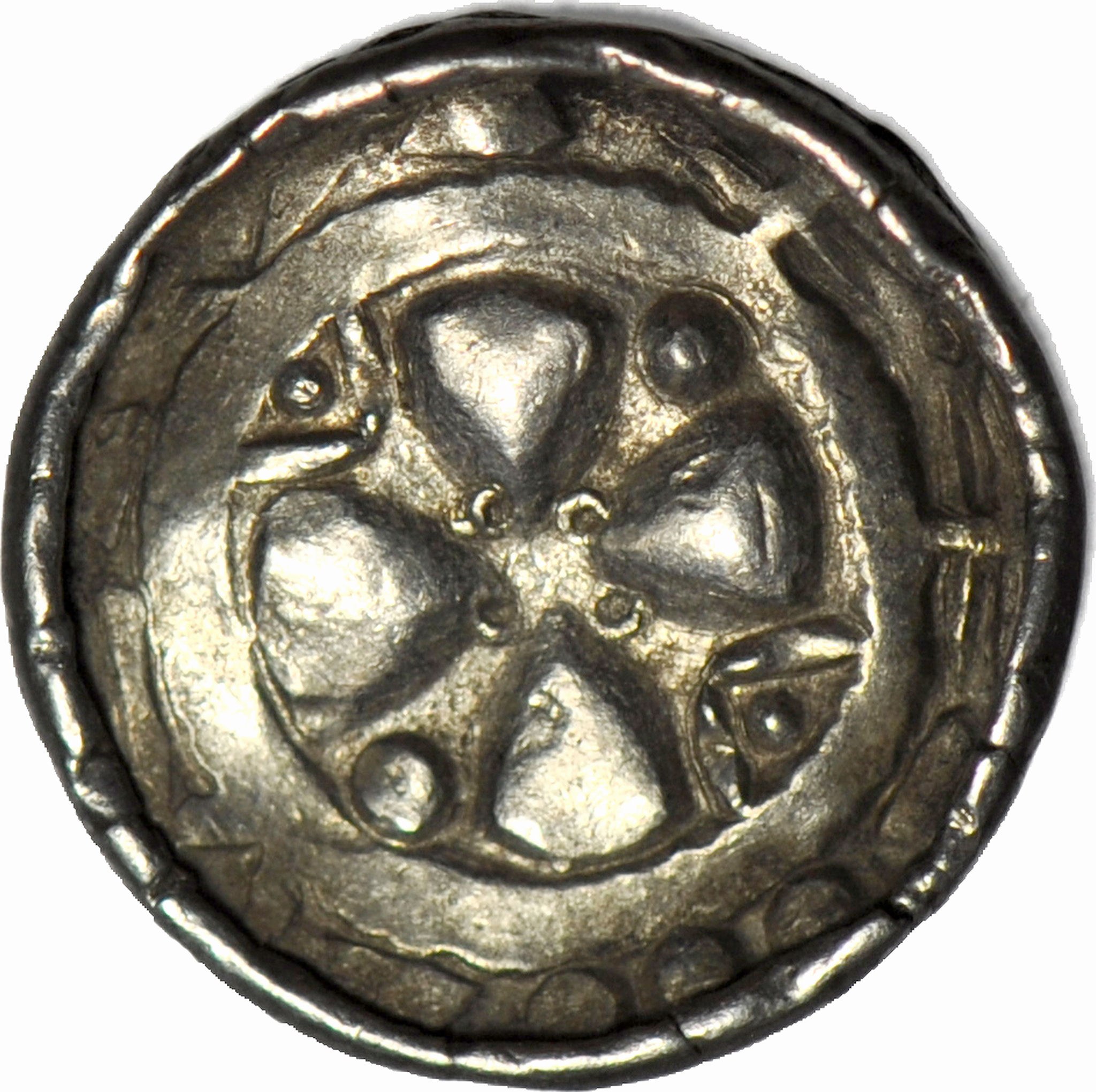 R-, Denar krzyżowy XIw, pastorał i kółeczka/krzyż maltański, kółeczka, PIĘKNY