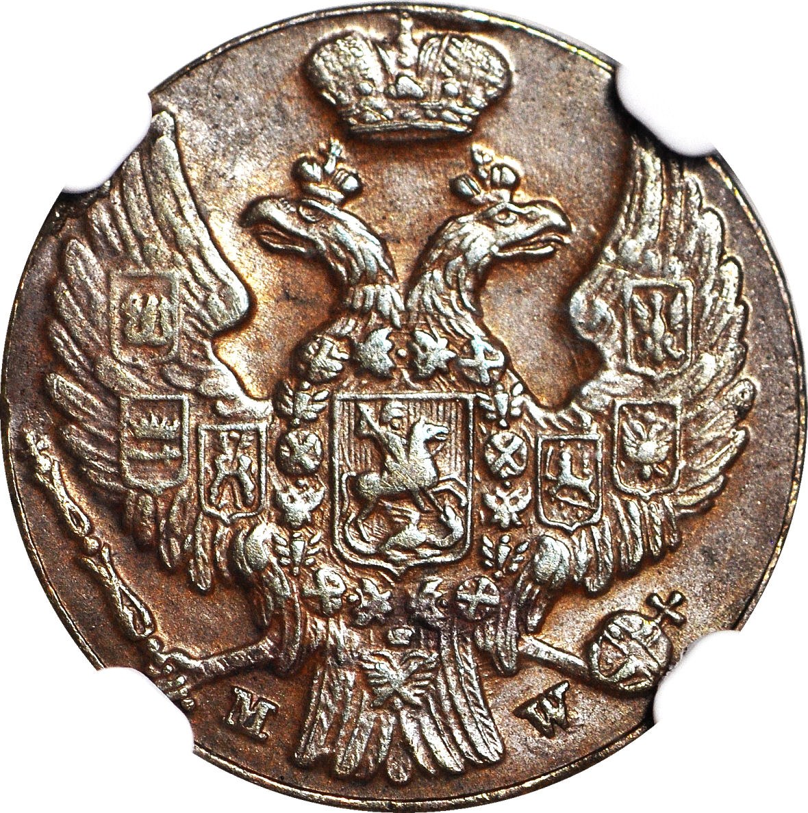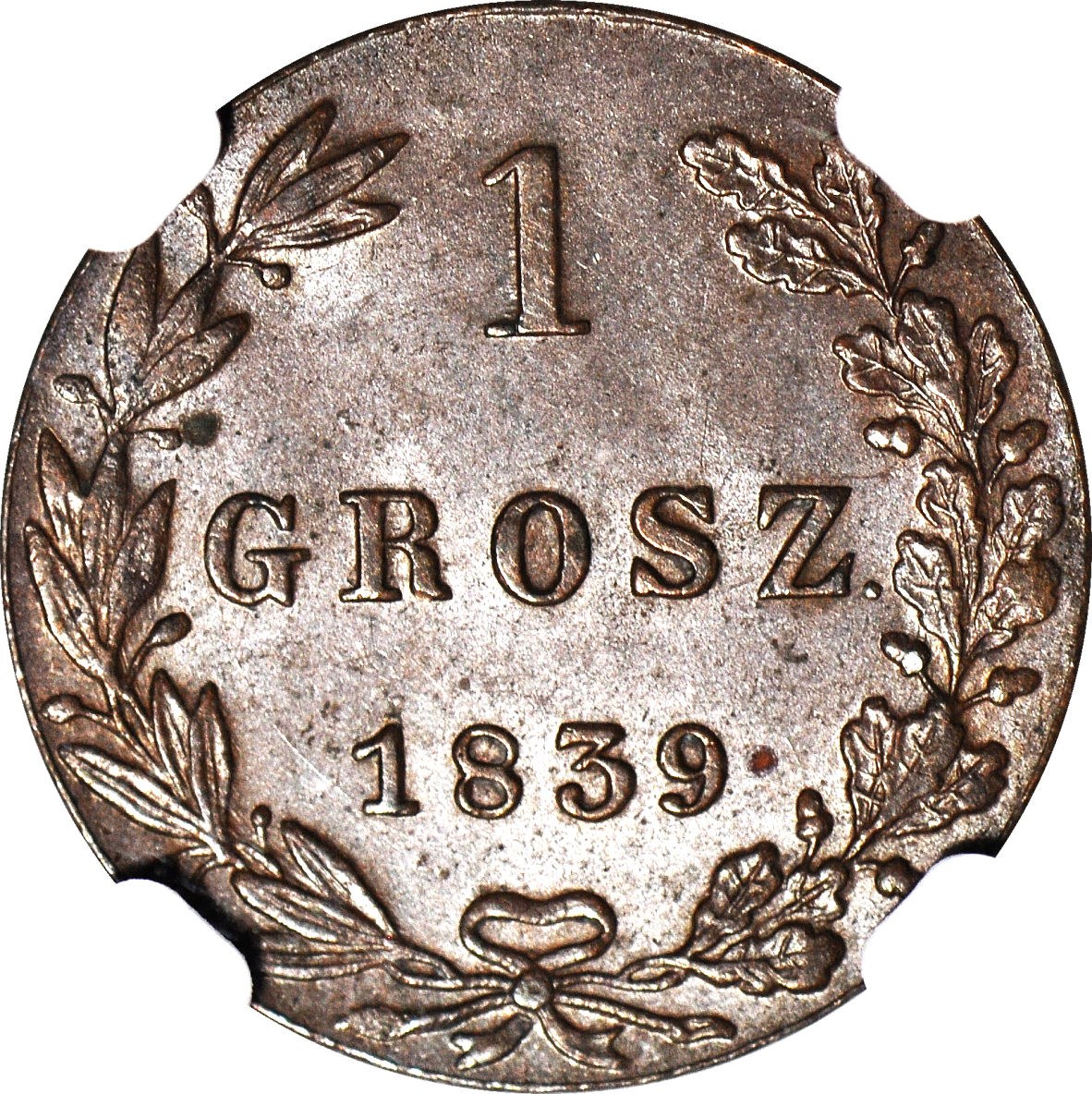 Prawdopodobnie najładniejszy znany egzemplarz odmiany z kropką. Rzadkość niespotykana w pięknym stanie, prawdopodobnie jedyny wygradowany egzemplarz(NGC i PCGS nie wyróżnia odmian). Grosz bity bez zgody cara w późniejszych latach 1841-1849, gdy obowiązywała nowa ordynacja z 1841. Moneta do najznaczniejszych kolekcji.