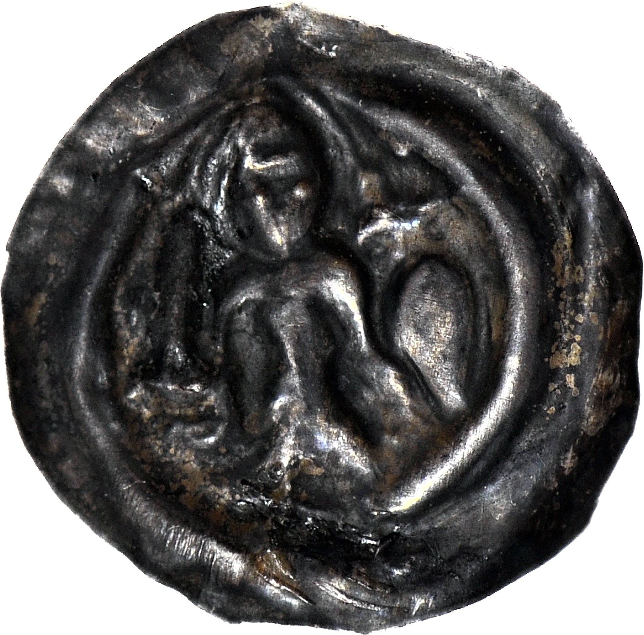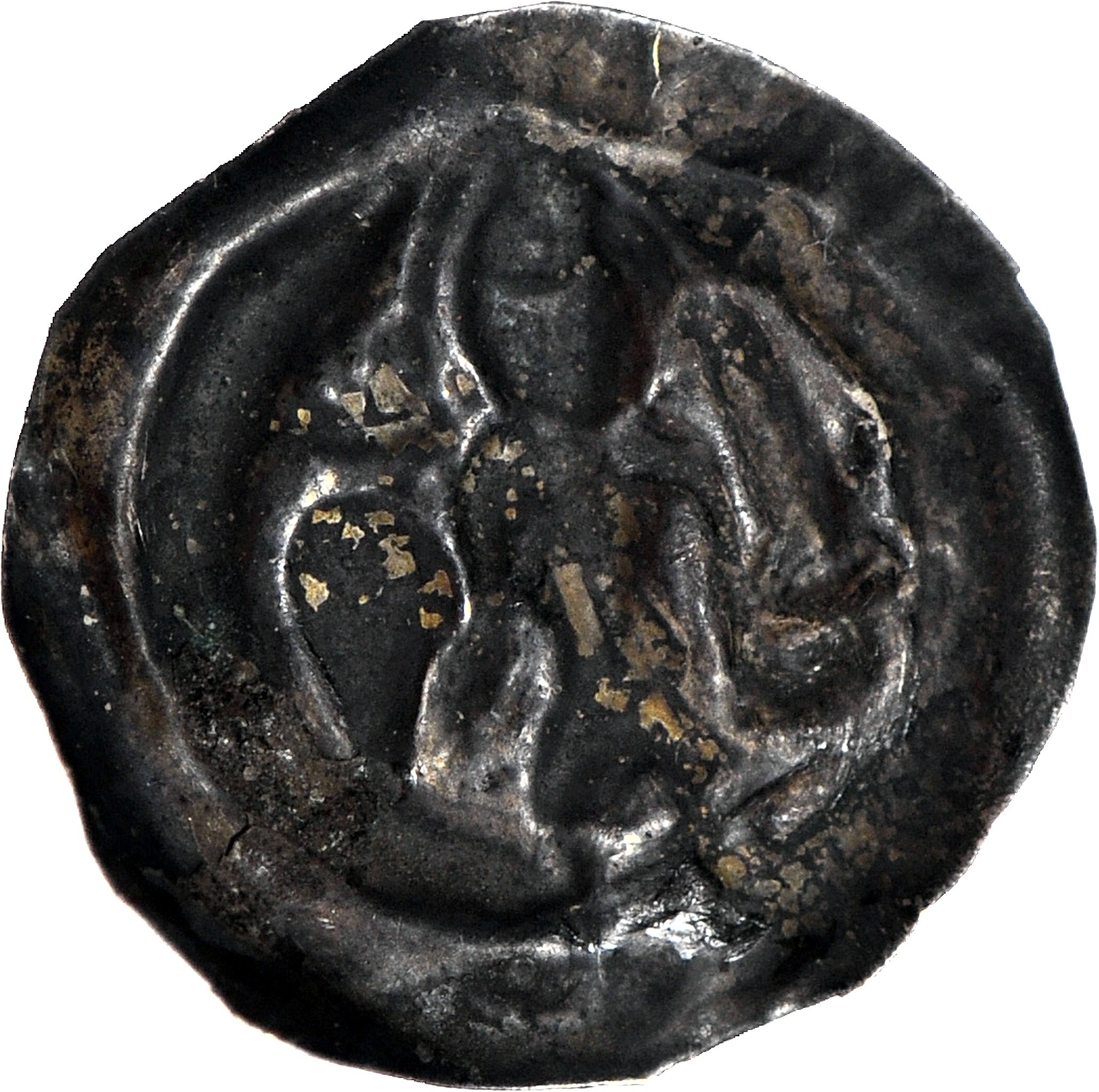 KOLEKCJA POLSKICH MONET ŚREDNIOWIECZNYCH I Z POLSKĄ ZWIĄZANYCH. Św. Maurycy z mieczem i tarczą na wprost. Dobra czytelność, stara patyna. Moneta kiedyś przypisywana Odonowi, obecnie nieznanemu władcy z Mazowsza lub Kujaw z II połowy XII wieku. Piękny egzemplarz z połyskiem menniczym.