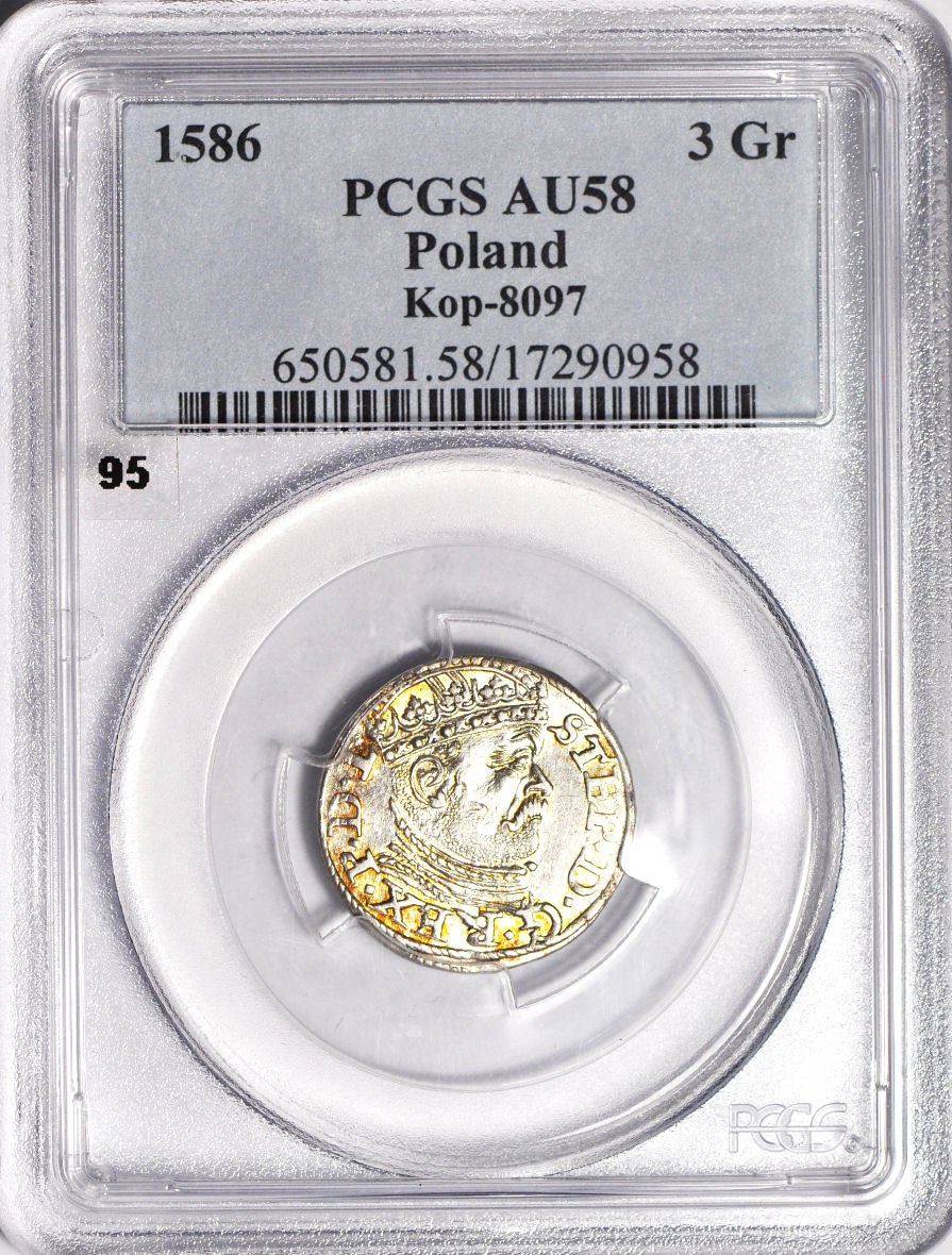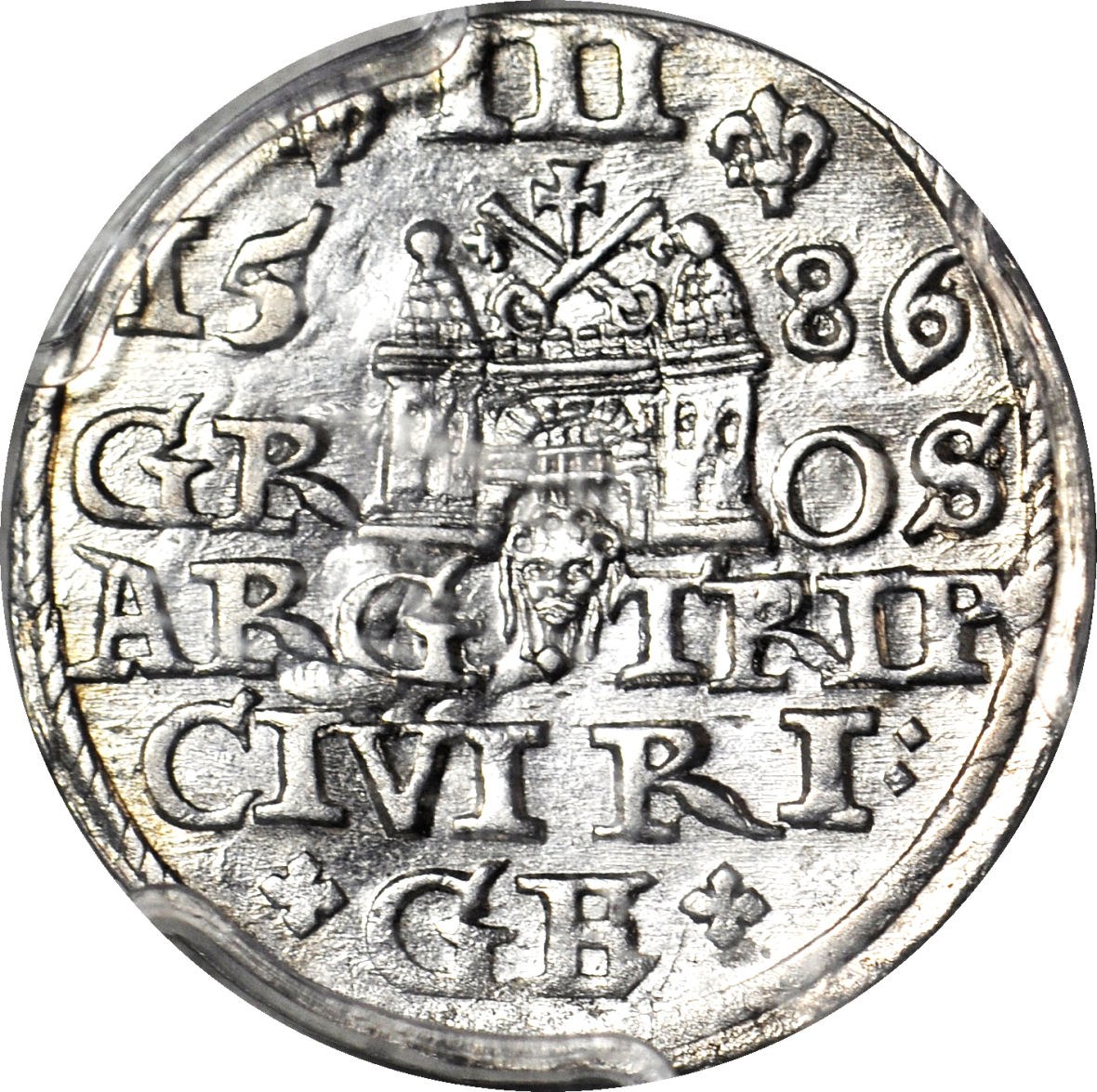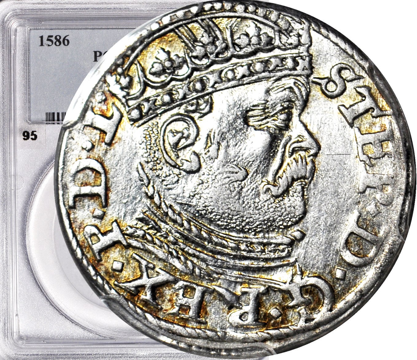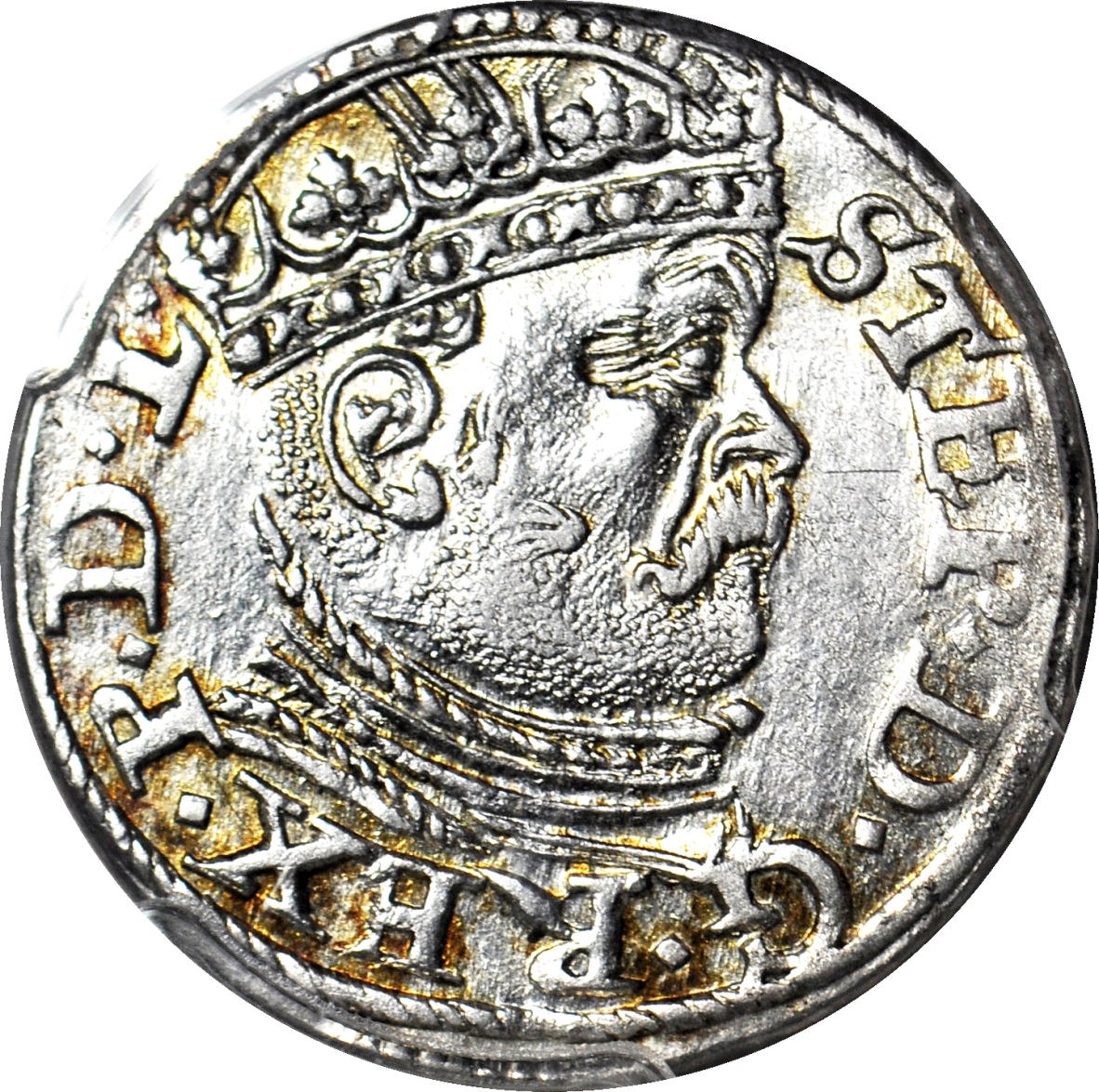 R-, Stefan Batory, Trojak 1586, Ryga, duża głowa, rzadki, menniczy