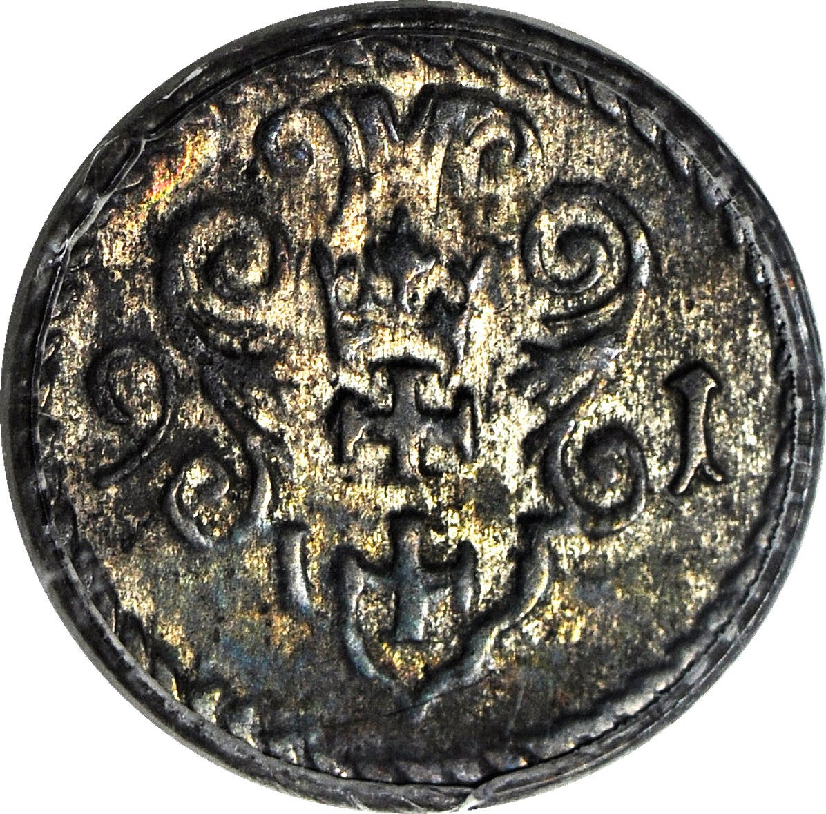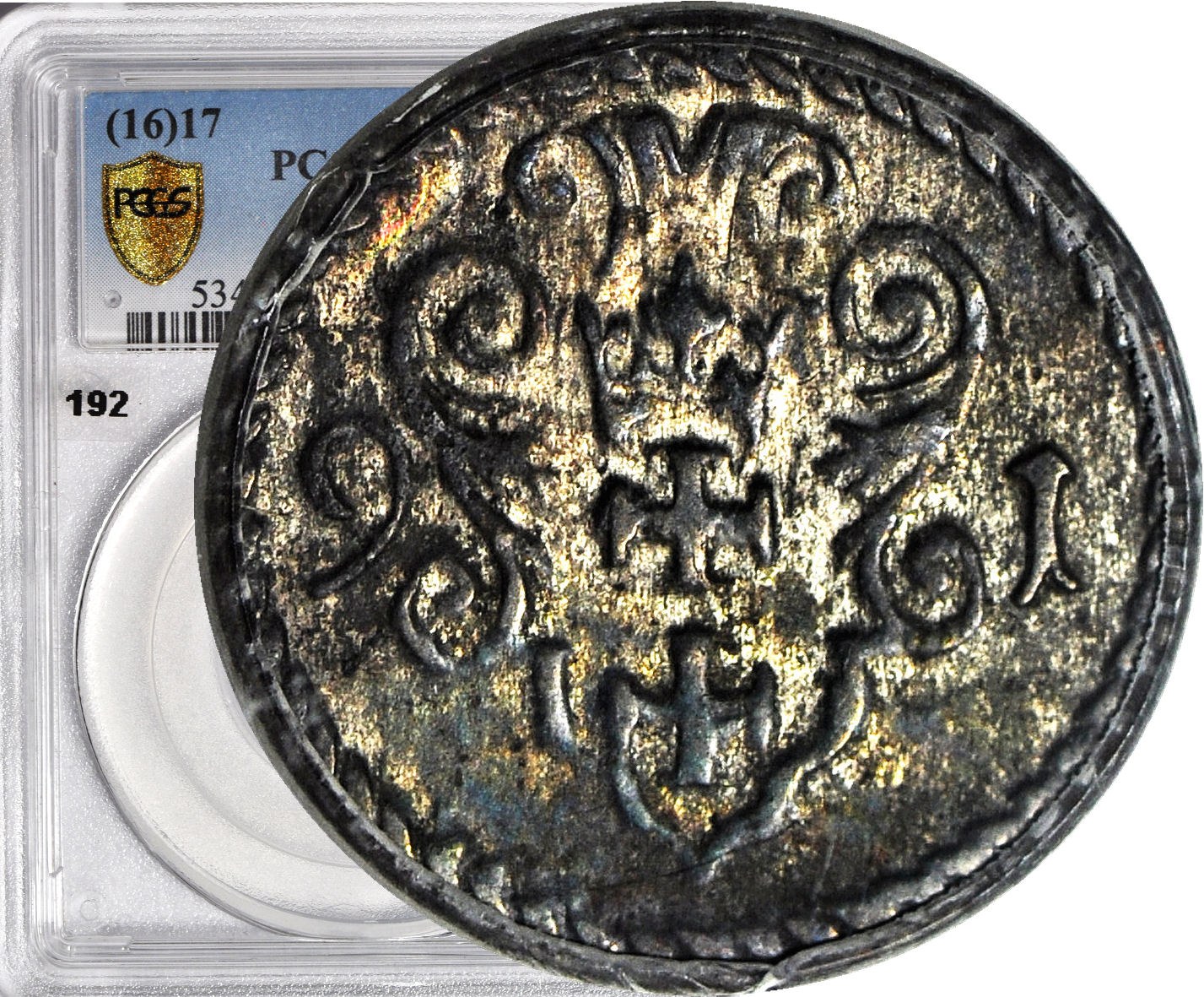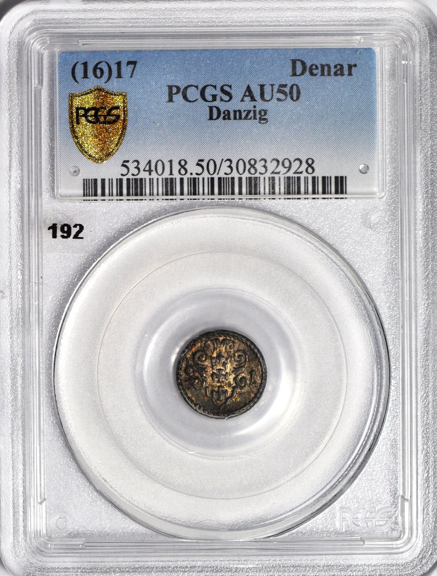 Tej monety w menniczym stanie w handlu praktycznie nie ma. Patrząc na wszystkie stany zachowania, bardzo rzadko pojawiający się w handlu rocznik, tylko 12 notowań na Onebid. 10-cio krotnie mniej niż denara z 1596 roku (110 notowań). Najwyższa nota gradingowa w PCGS i zarazem jedyny egzemplarz. Błędna data na slabie.