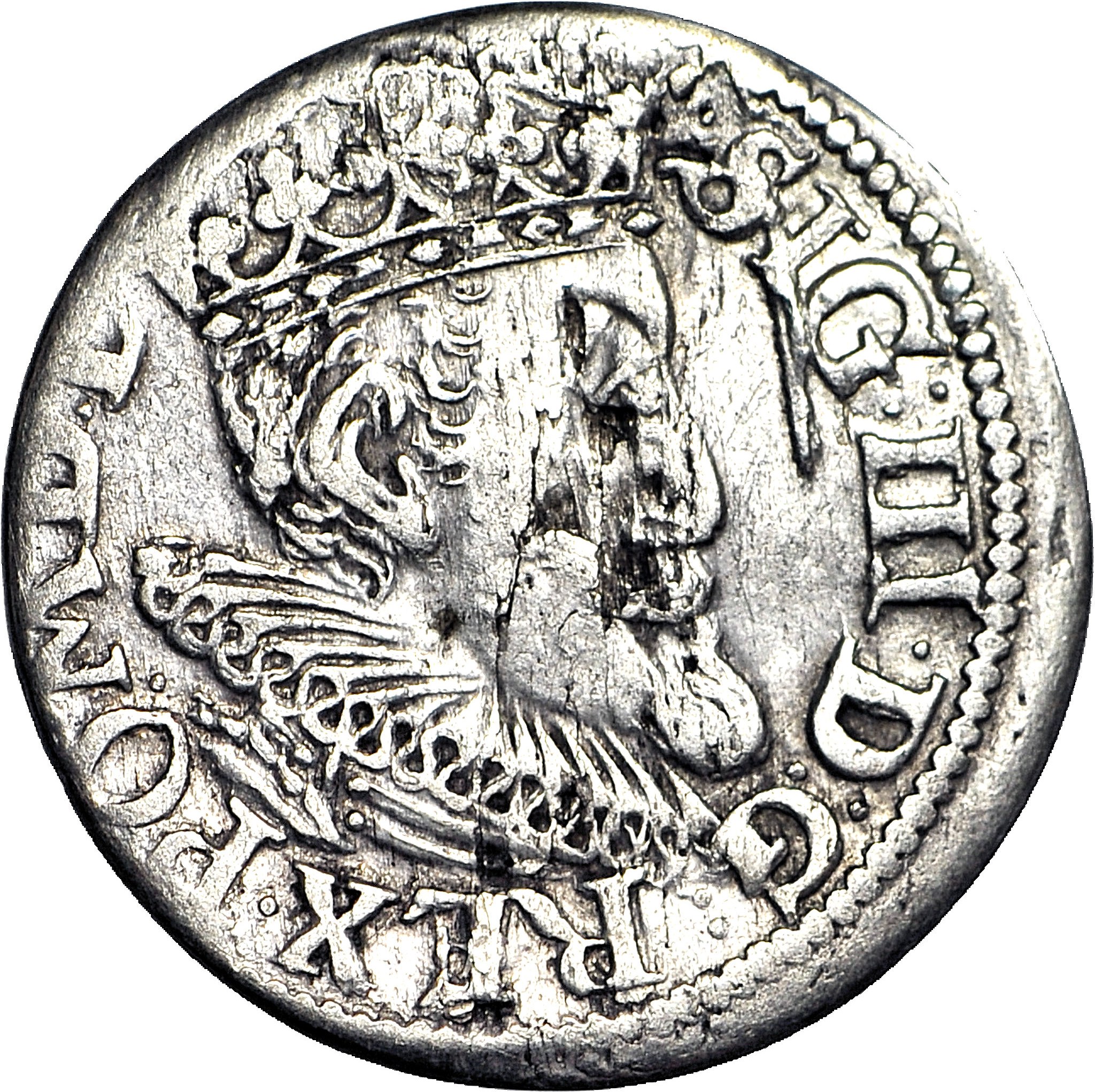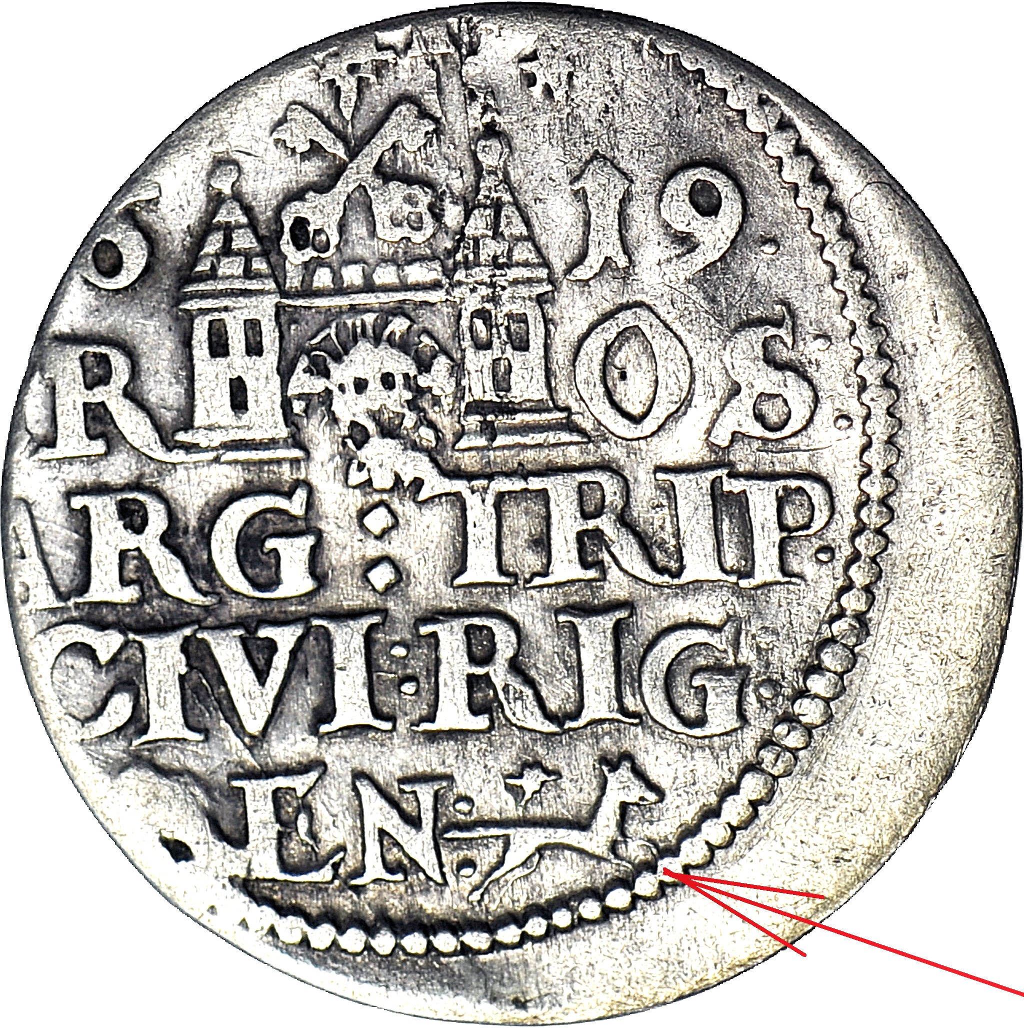 R-, Zygmunt III Waza, Trojak 1619, Ryga, Z LISEM, T.3 mk, rzadki