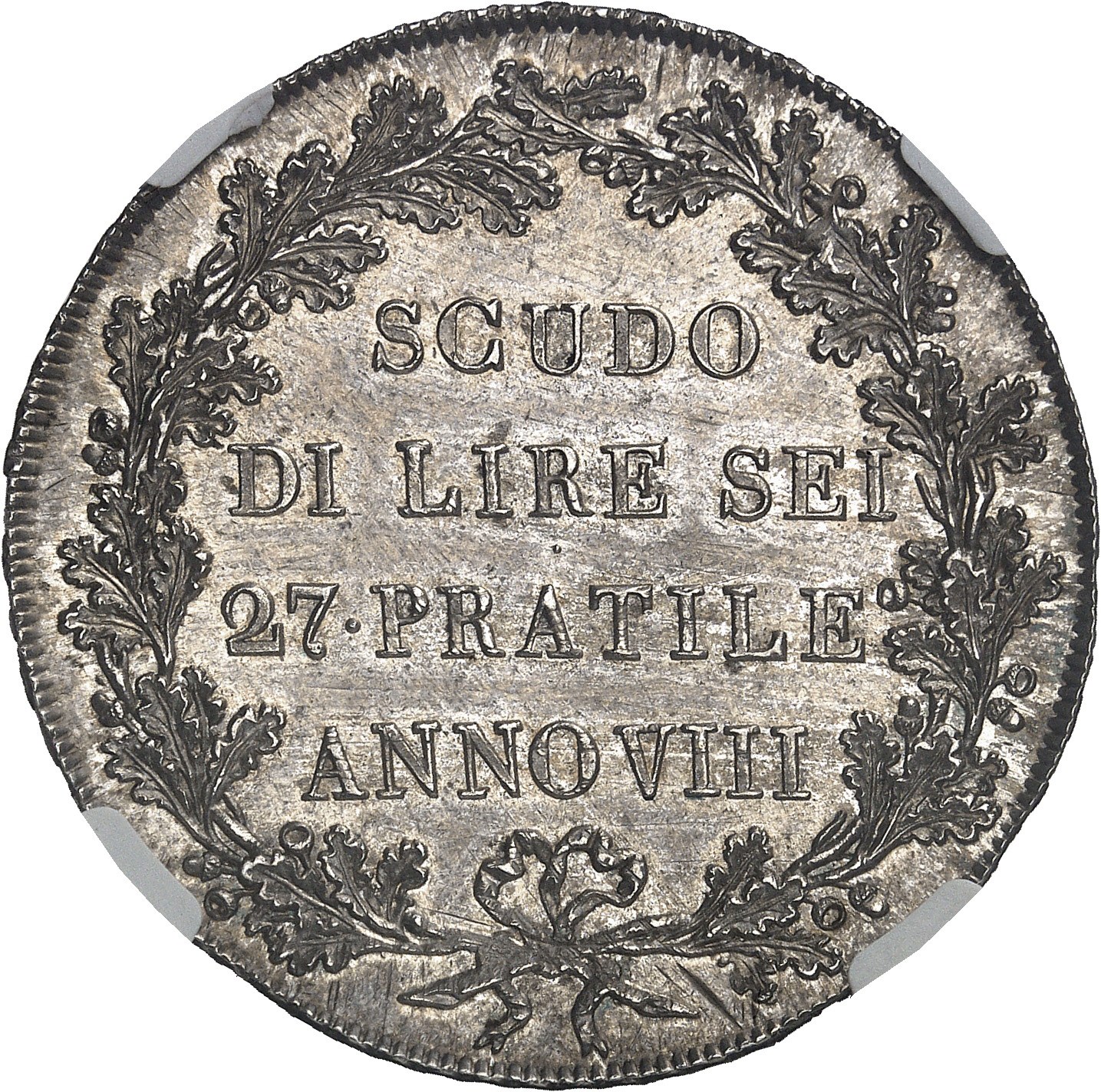 République Cisalpine (1797-1802). Écu (scudo) de 6 lire An VIII (1800), Milan. NGC MS 62 (6647372-003).