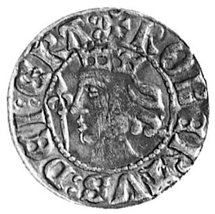 Robert III (1371-1390), denar, Aw: Głowa z koroną i ber...