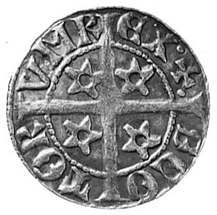 Szkocja, Robert III (1371-1390), denar, Aw: Głowa z koroną i berłem i napis: ROBERTVSDEI GRA..., Rw: Długi krzyż, w polach między ramionami 4 gwiazdki, wokółnapis: REX SCOTORUM, patrz Stewart- The Scottish Coinage, London 1955