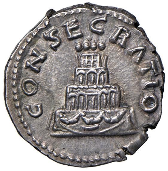 Antonino Pio (138-161). Denario - Testa a d. - Pira funeraria - RIC 436 AG (g 3,31) Bellissimo esemplare dalla delicata patina