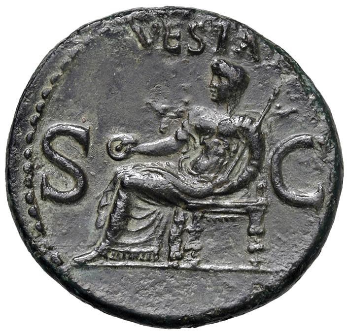 Roman coins Empire - Caligula (37-41) As - Head to the left - R/ Vesta seate...