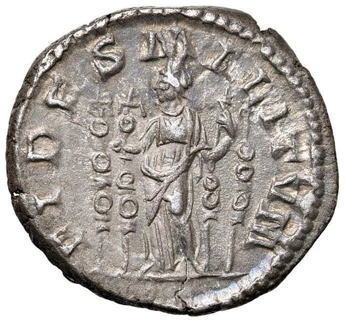 Macrinus (217-218) Denarius - Laureate bust r. - R/ Fidelity standing l. - RIC 68 AG (g 3.31)