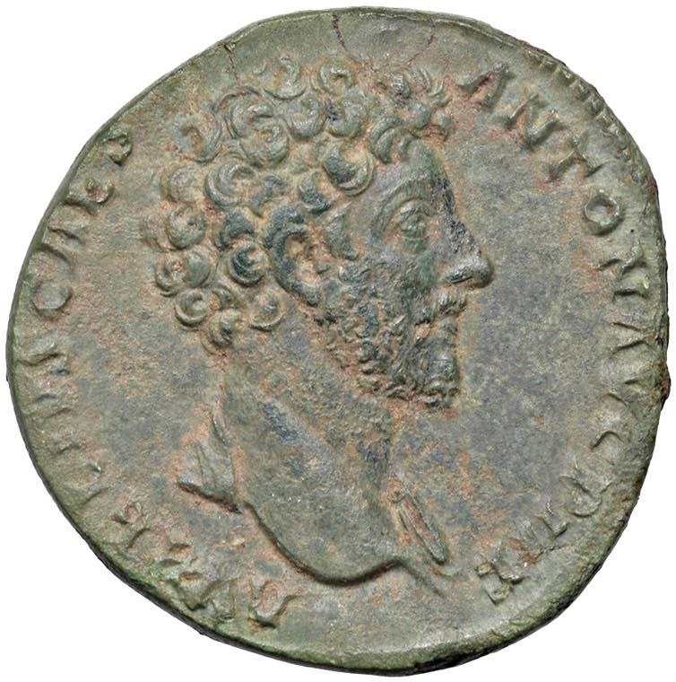 Marcus Aurelius (161-180) Sestertius - Head r. - R/ Fortune standing l. - RIC 1338 AE (g 21.69) A beautiful piece with high reliefs