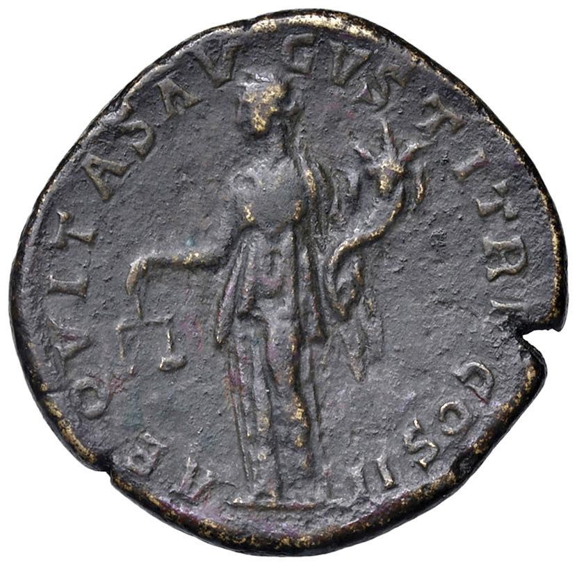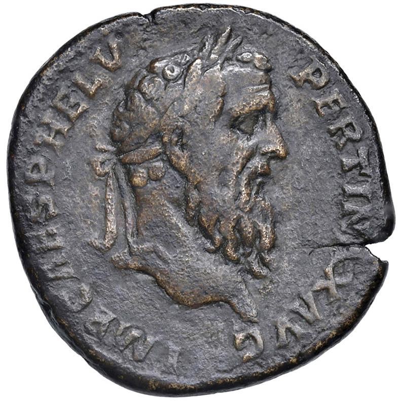 Pertinax (193) Sestertius false or reconstructed with a burin - Laureate bust to the right - R/ Equity standing to the left - AE (g 21.94) A singular and intriguing fantasy issue; likely a skillfully retooled and re-engraved sestertius of Antoninus Pius. Published by L. Bellesia in Annotazioni Numismatiche 35, pp. 810-811.