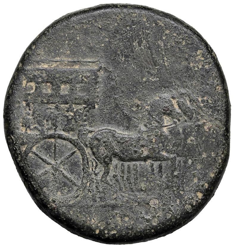 Tiberio (14-37) Sesterzio - Carpentum a d. - R/ SC nel campo - RIC 66 AE (g 28,86) RR Qualche corrosione narginale