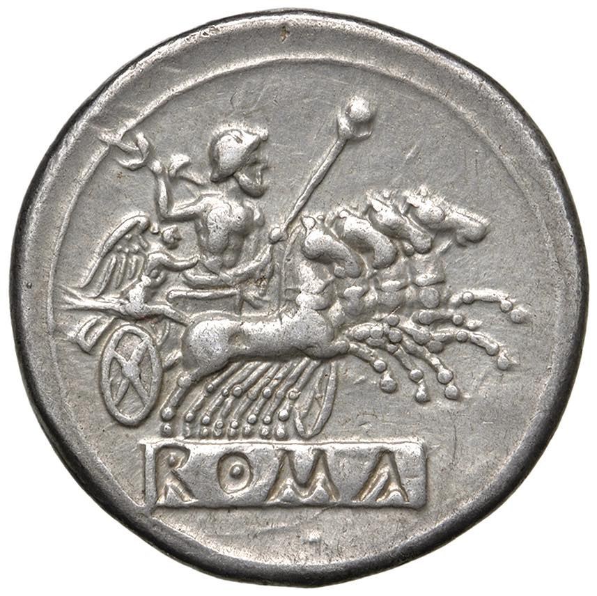 Anonymous - Didrachm (225-212 BC) Head of Janus - R/ Jupiter on quadriga to the right, below, ROME incusus - B. 23; Cr. 30 AG (6.65 g)
