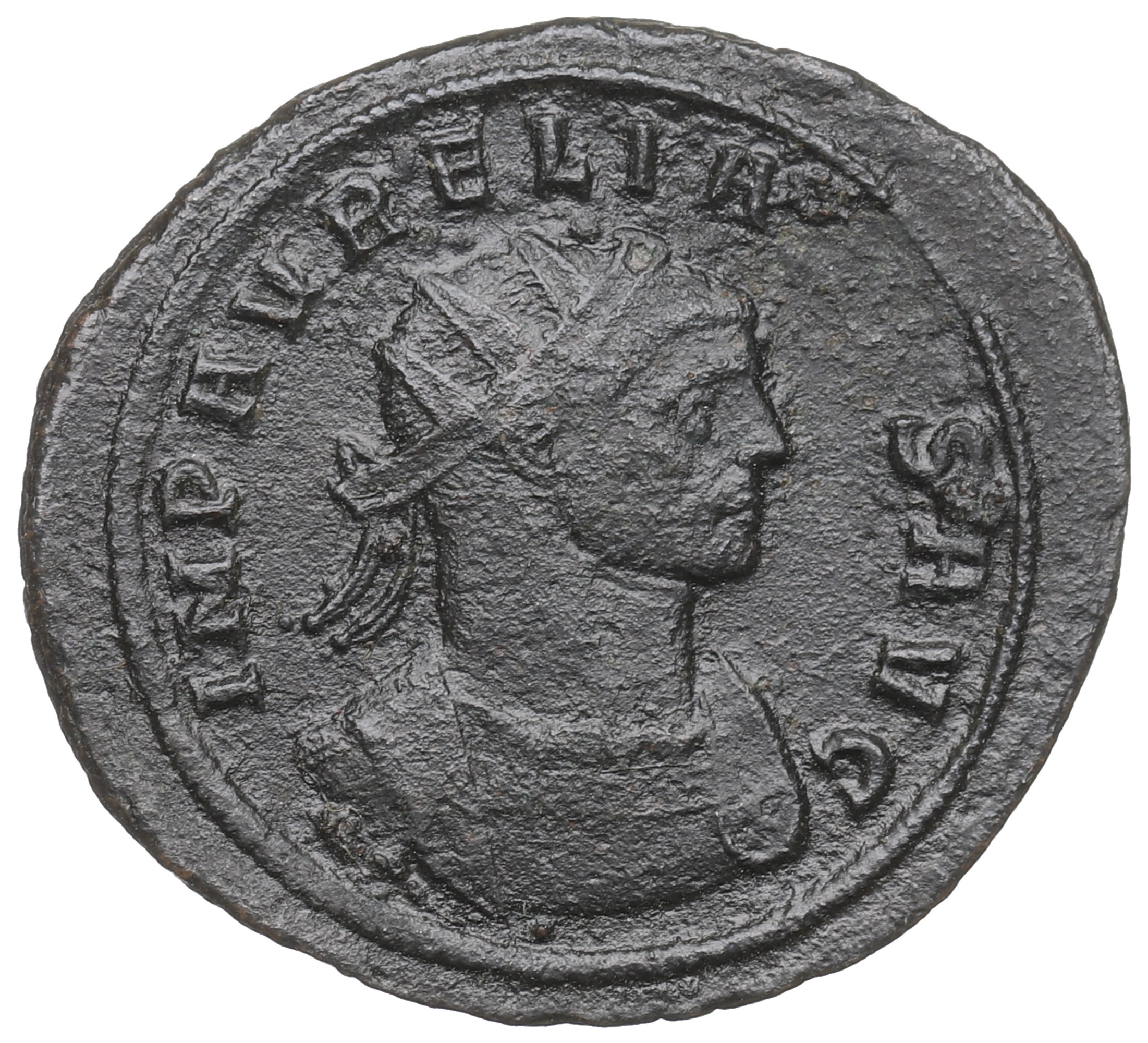 Awers: popiersie cesarza w koronie promienistej i zbroi, w prawo, w otoku legenda: