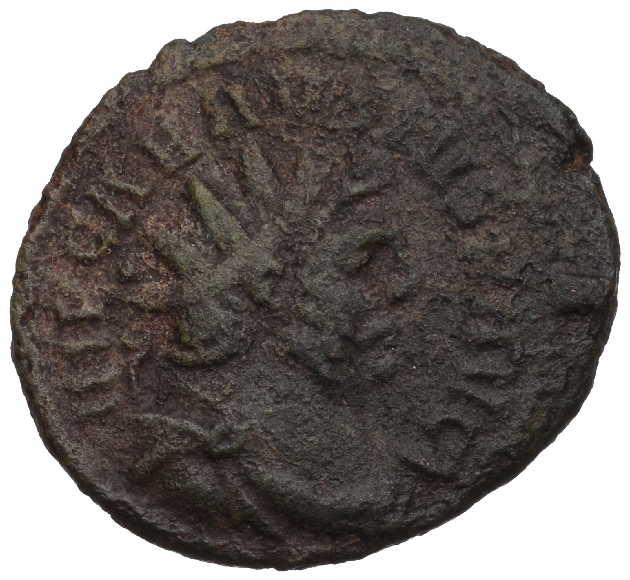 Awers: popiersie uzurpatora w koronie promienistej, zbroi i paludamentum, w prawo, w otoku legenda: