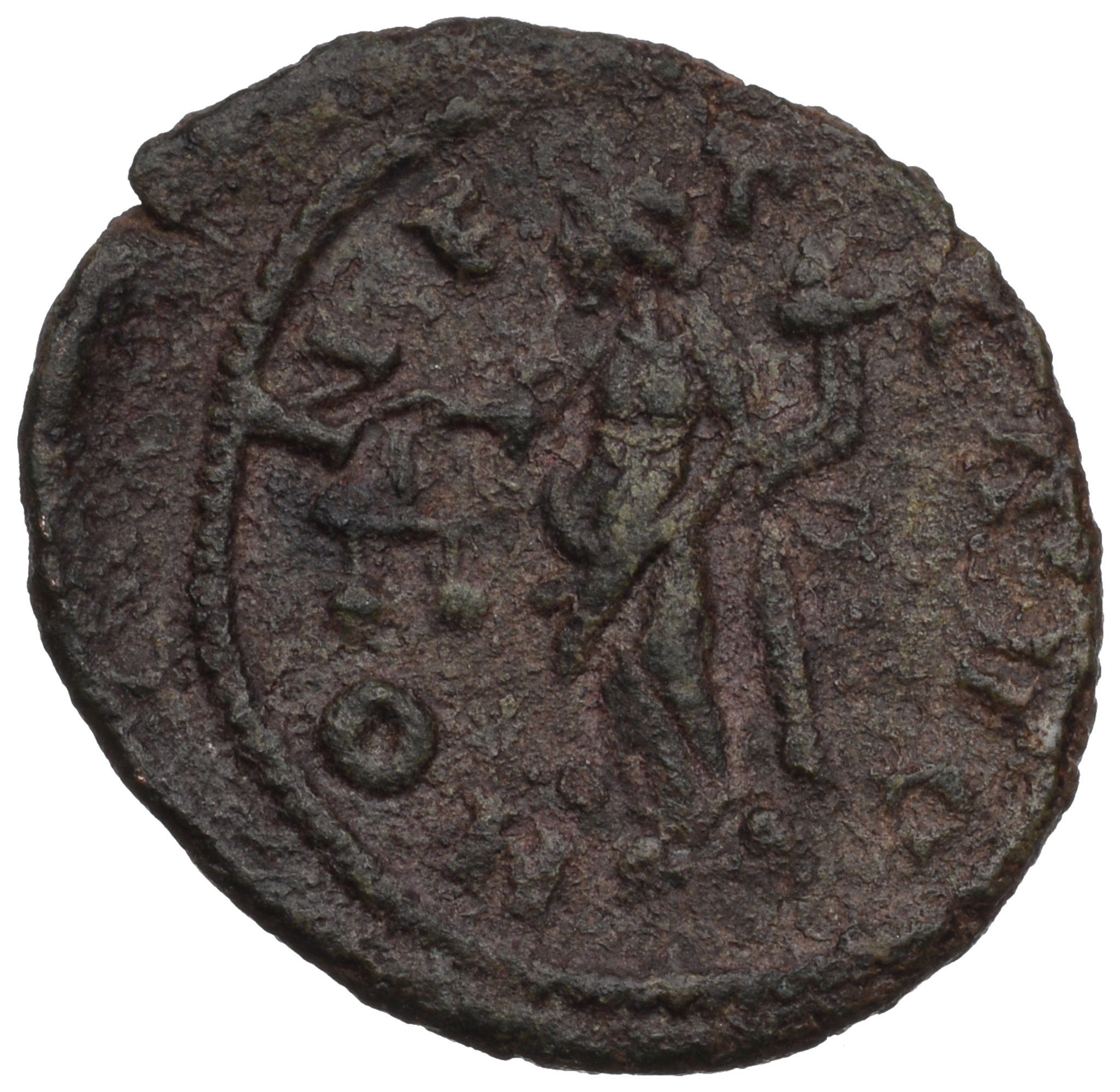 Rewers: Moneta stojąca w lewo, trzyma róg obfitości i wagę, w otoku legenda: