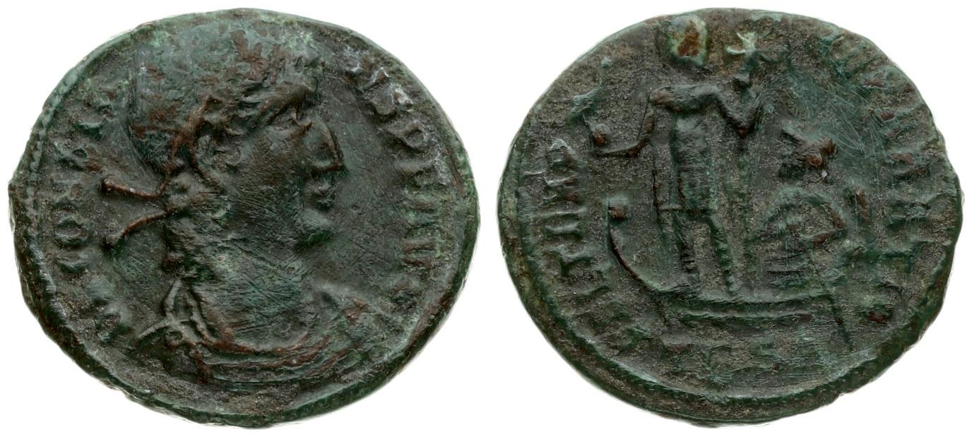 Roman Empire Centenionalis Constans (337-350 AD). Thessalonica 348-350 AD. FEL TEMP REPARATIO. Galley. RIC 244