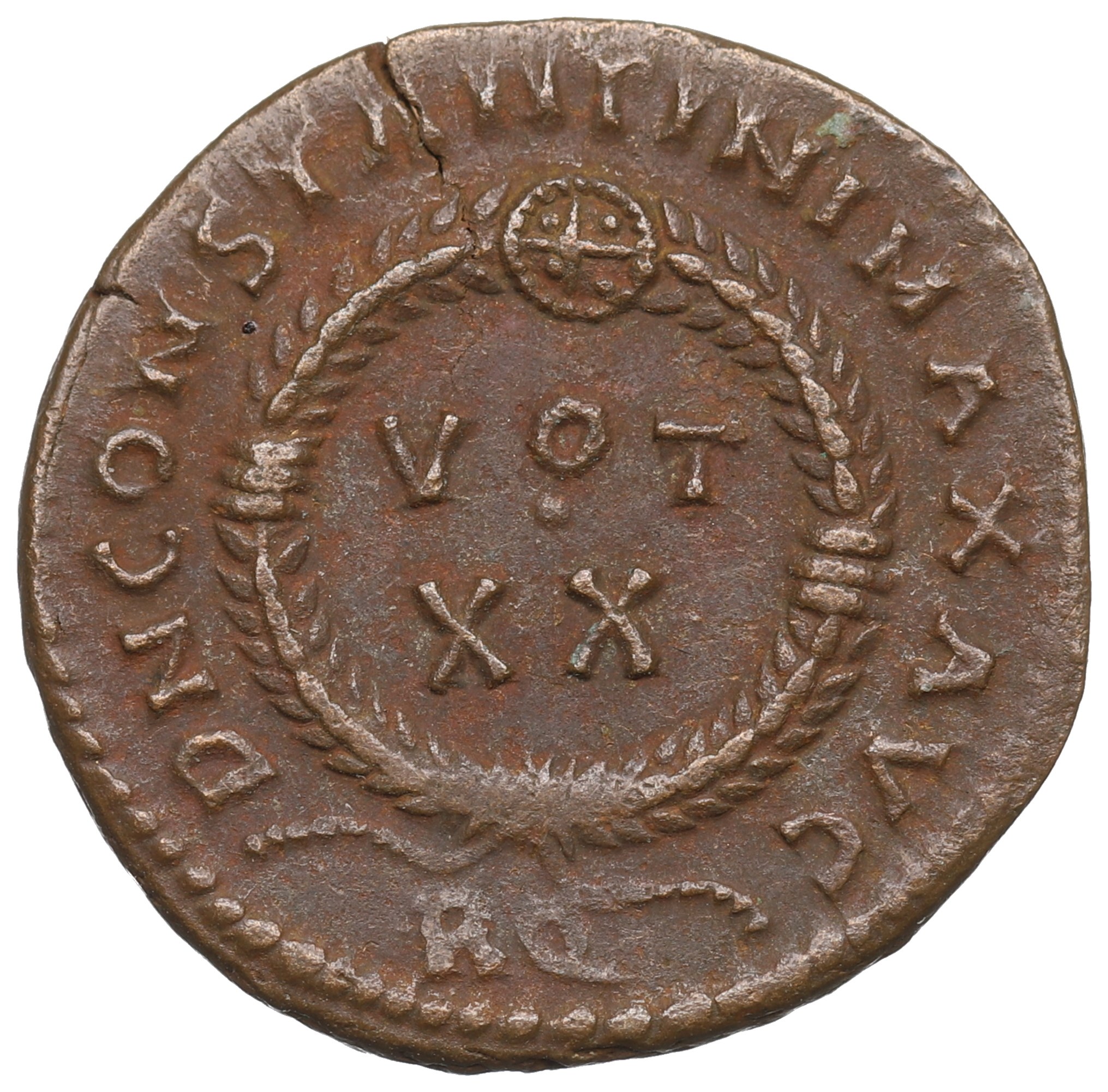 Rewers: wieniec laurowy, w nim legenda VOT/XX, w otoku legenda: