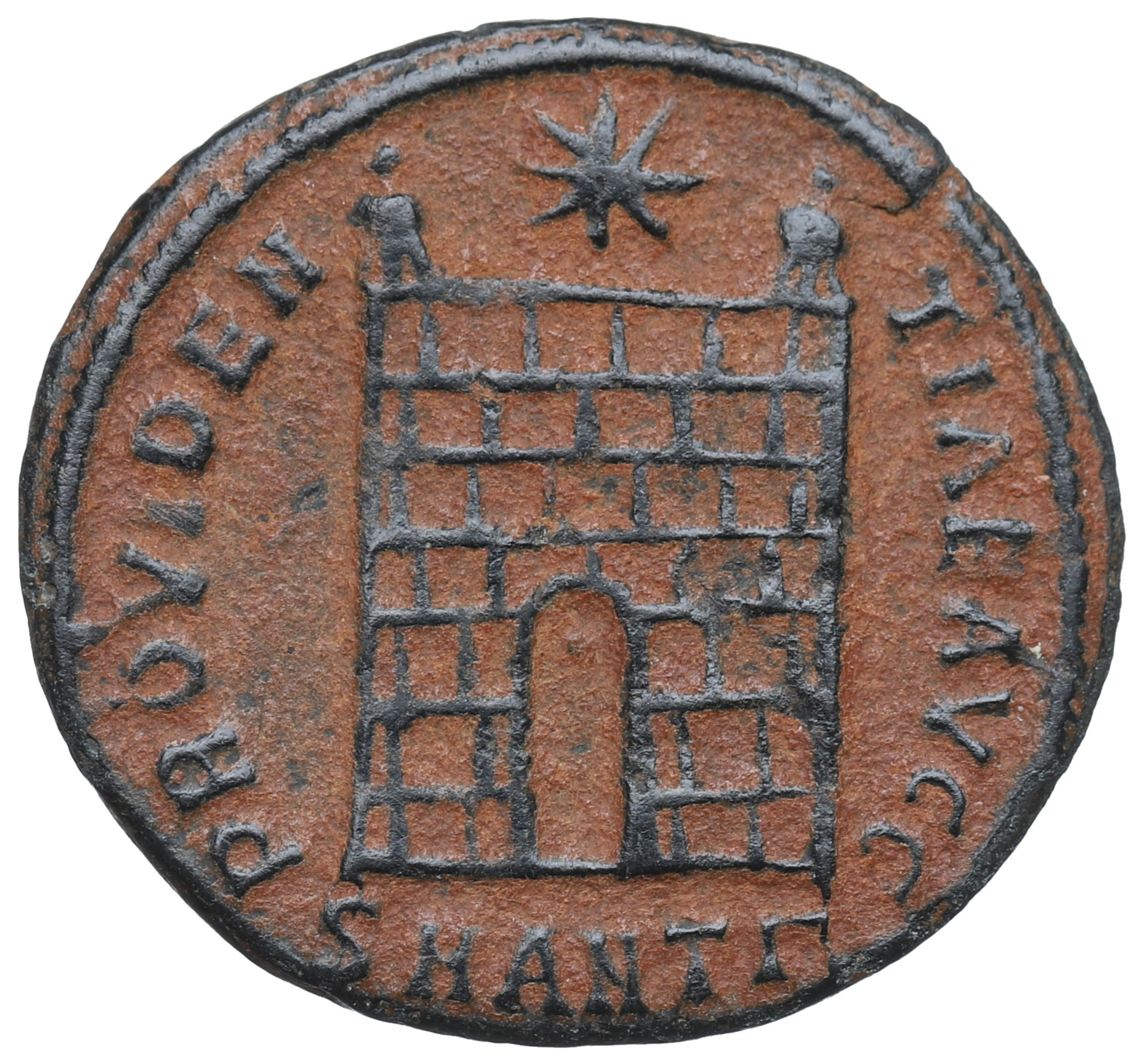 Rewers: brama obozowa z 7 rzędów cegieł, o otwartej bramie, w otoku legenda: