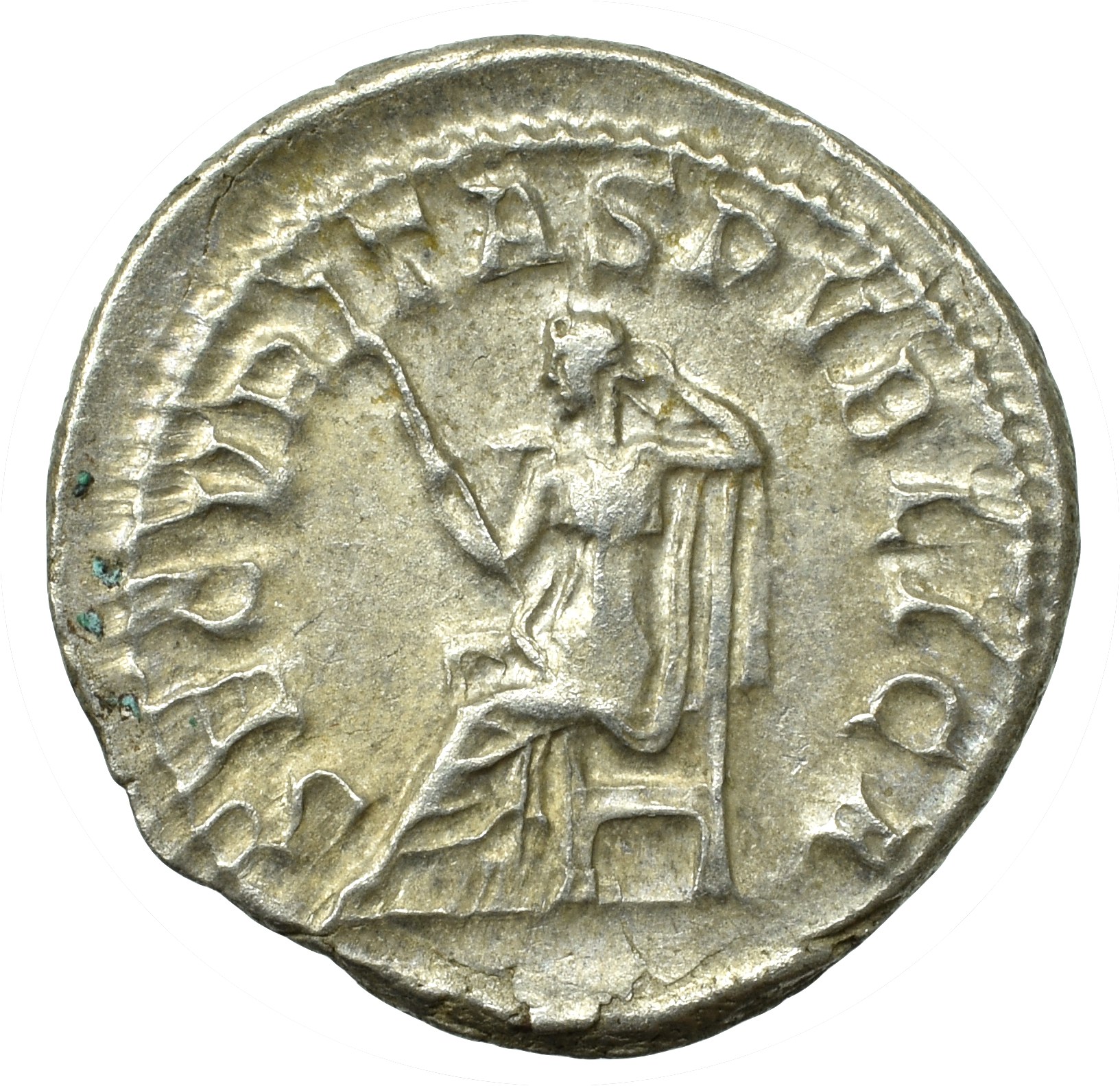 Rewers: Securitas siedząca na tronie w lewo, trzyma berło, w otoku legenda: