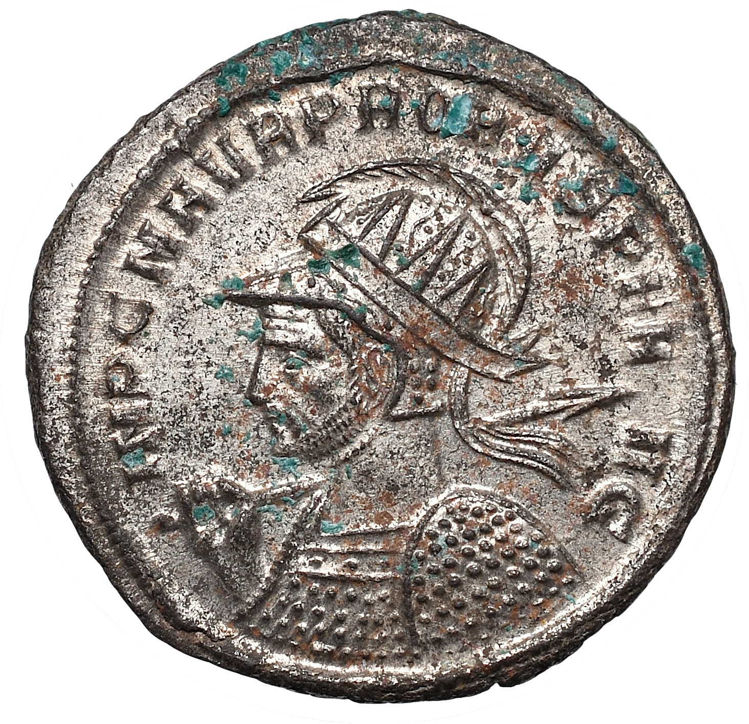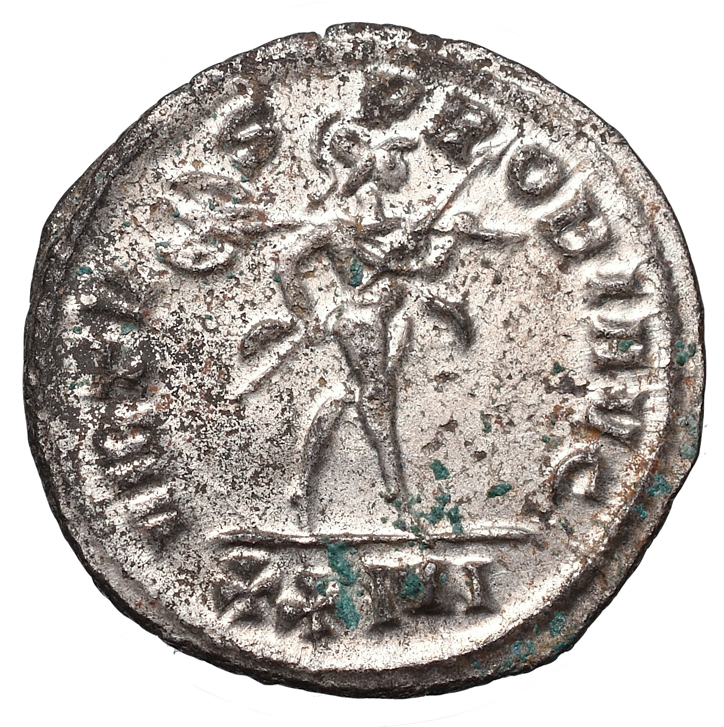 Rewers: Mars kroczący w prawo, niesie tropajon i włócznię, w otoku legenda: