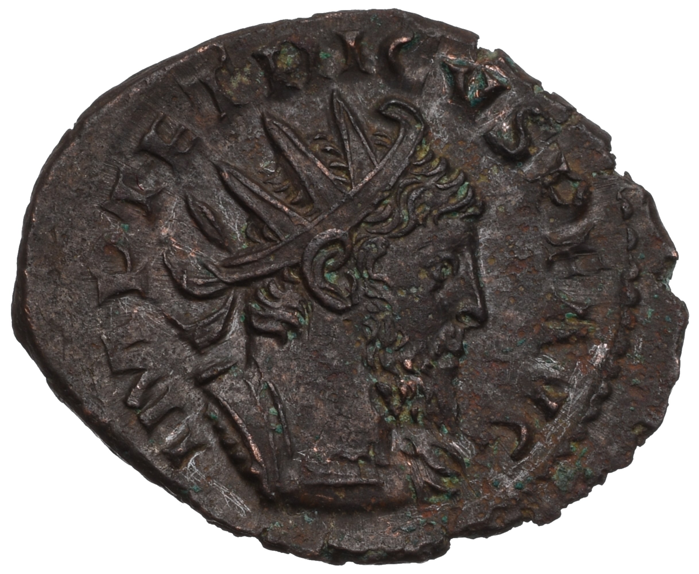 Awers: popiersie cesarza w koronie promienistej i zbroi, w prawo, w otoku legenda: