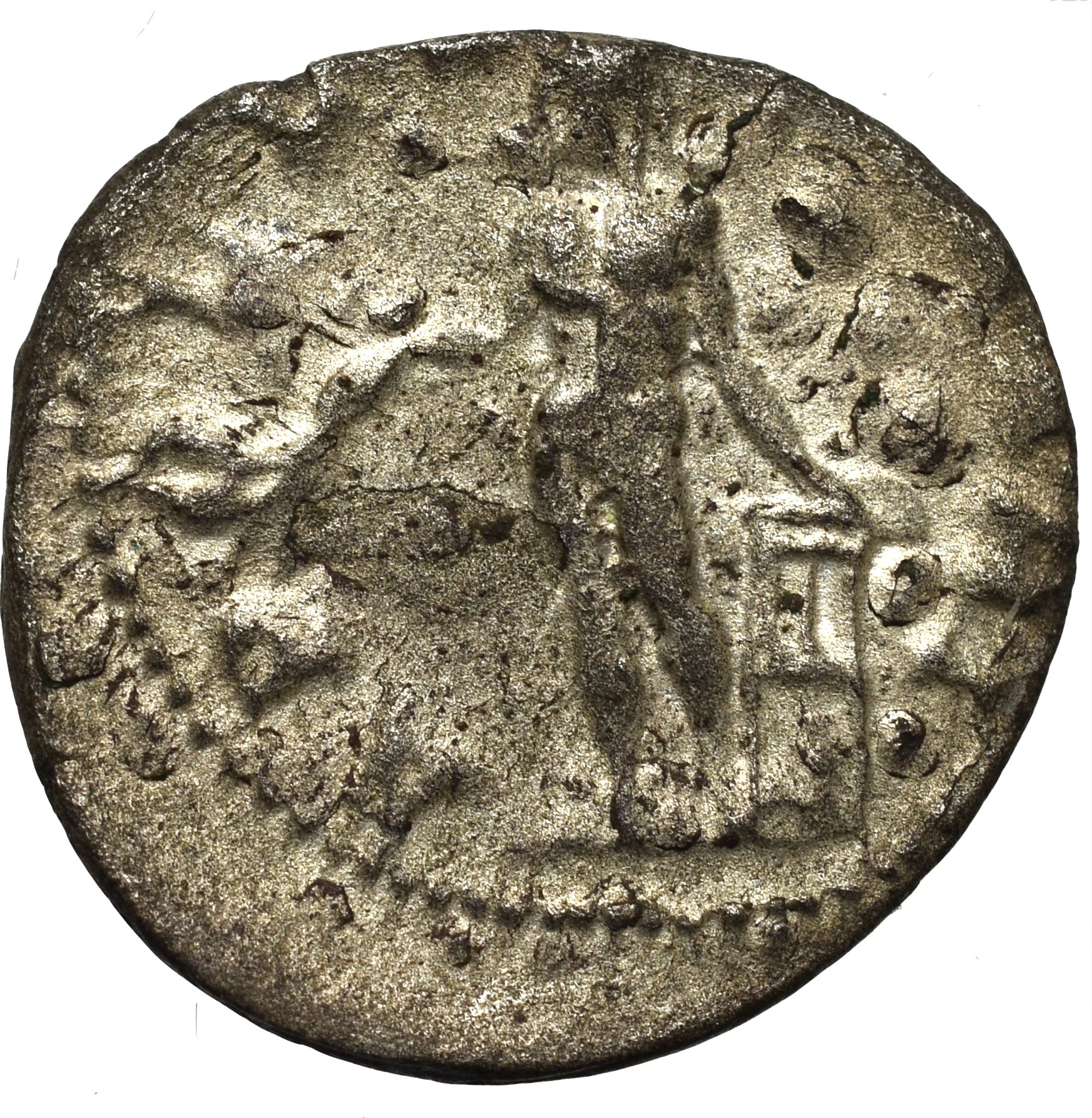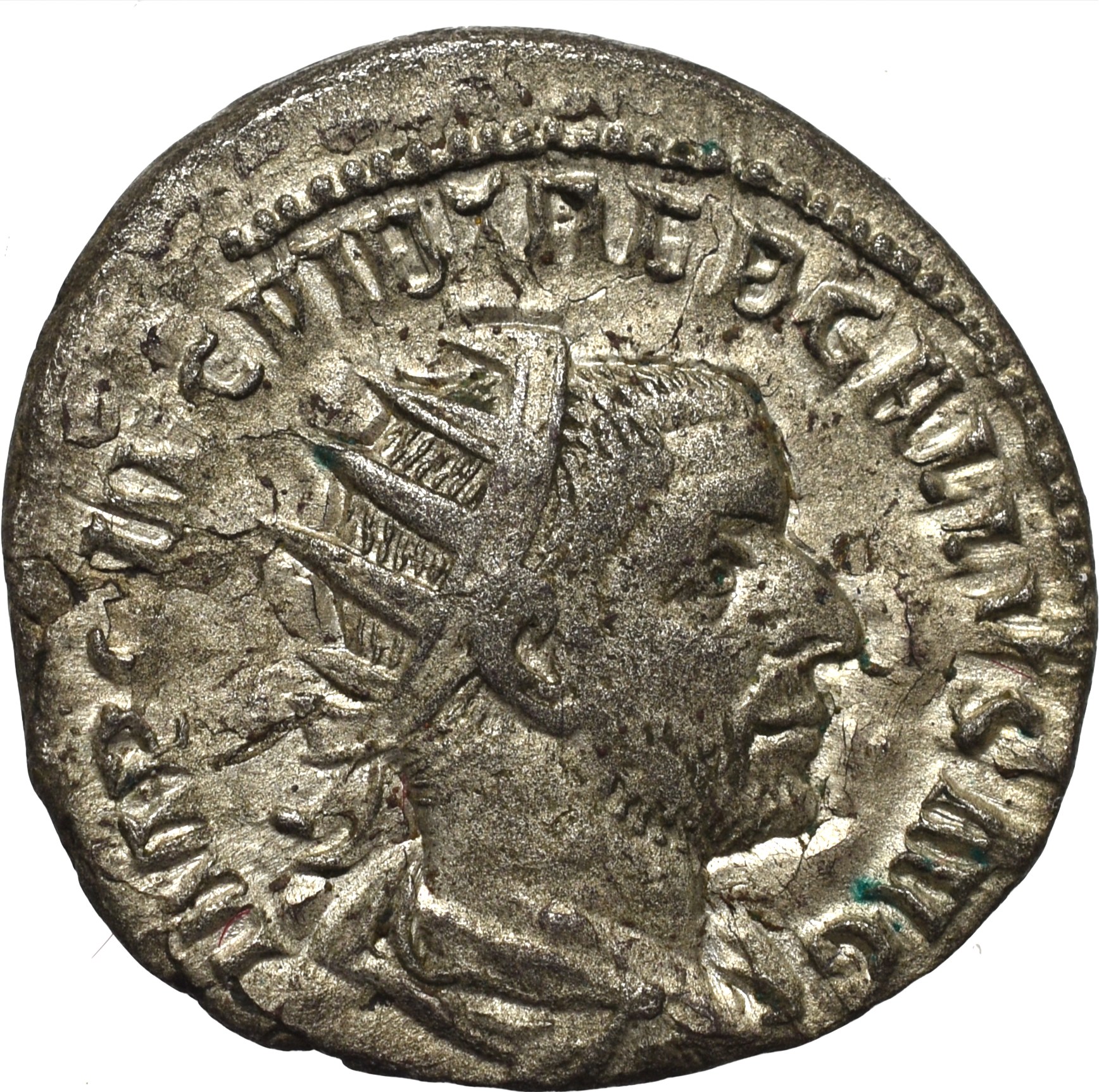 Awers: popiersie cesarza w koronie promienistej, zbroi i paludamentum, w prawo, w otoku legenda: